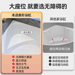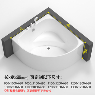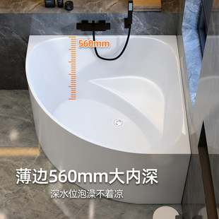 定制薄边深泡扇形浴缸小户型家用三角浴盆按摩恒温冲浪一米小浴池