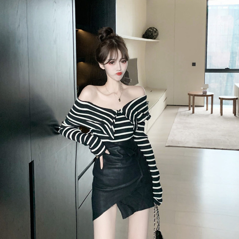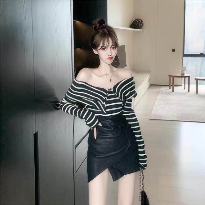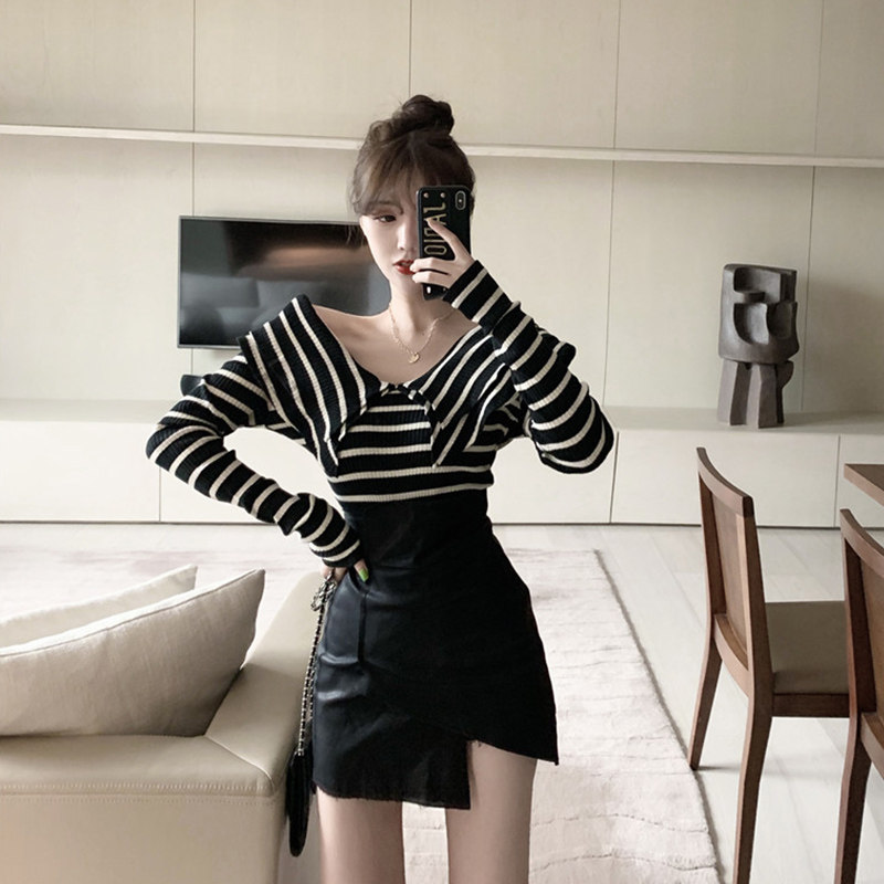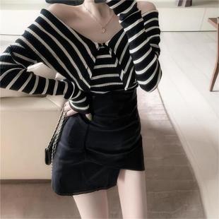 高级感港味V领毛衣半身裙两件套裙子皮裙套装 秋冬不规则2024新款