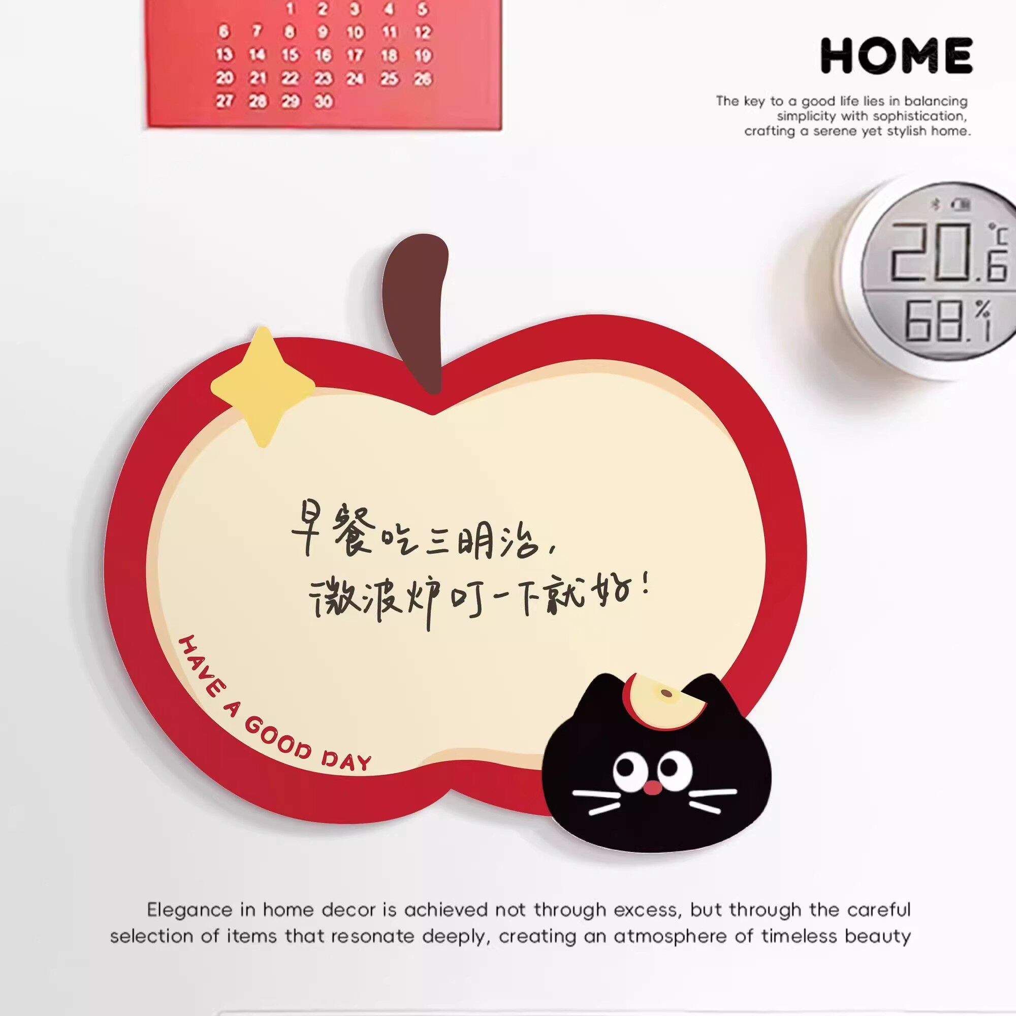 苹果小猫磁吸留言板高级感冰箱留言板2025新款 冰箱记事板备忘录