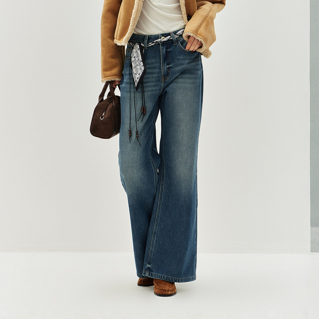 子 女夏松弛感街头宽松显瘦弯刀裤 橘子树在哪儿美式 复古水洗牛仔裤