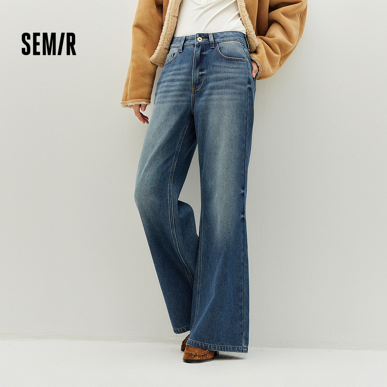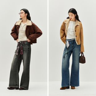 美拉德棕色低腰显瘦喇叭裤 女秋季 复古加绒咖色微喇牛仔裤 MYFC美式