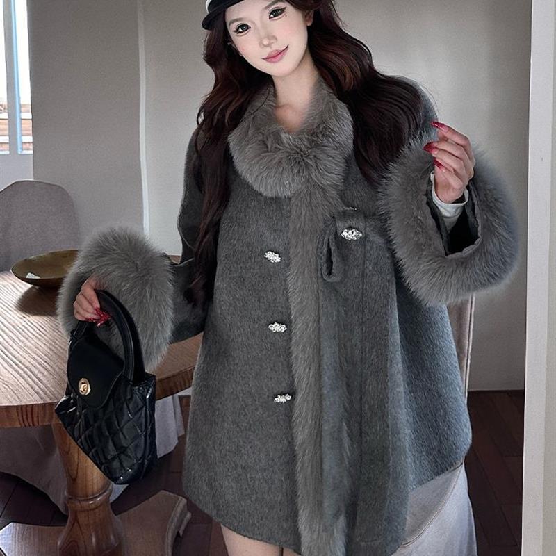 雪国千金 外套设计感蝴蝶结大衣女 冬日氛围感财阀千金风毛呢短款