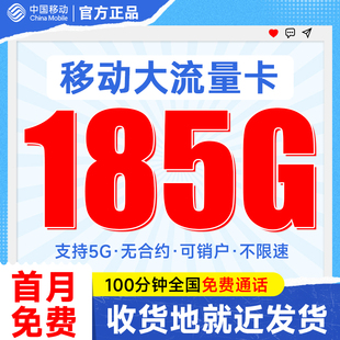 中国移动流量卡纯流量上网卡无线限大流量卡5G全国通用手机电话卡