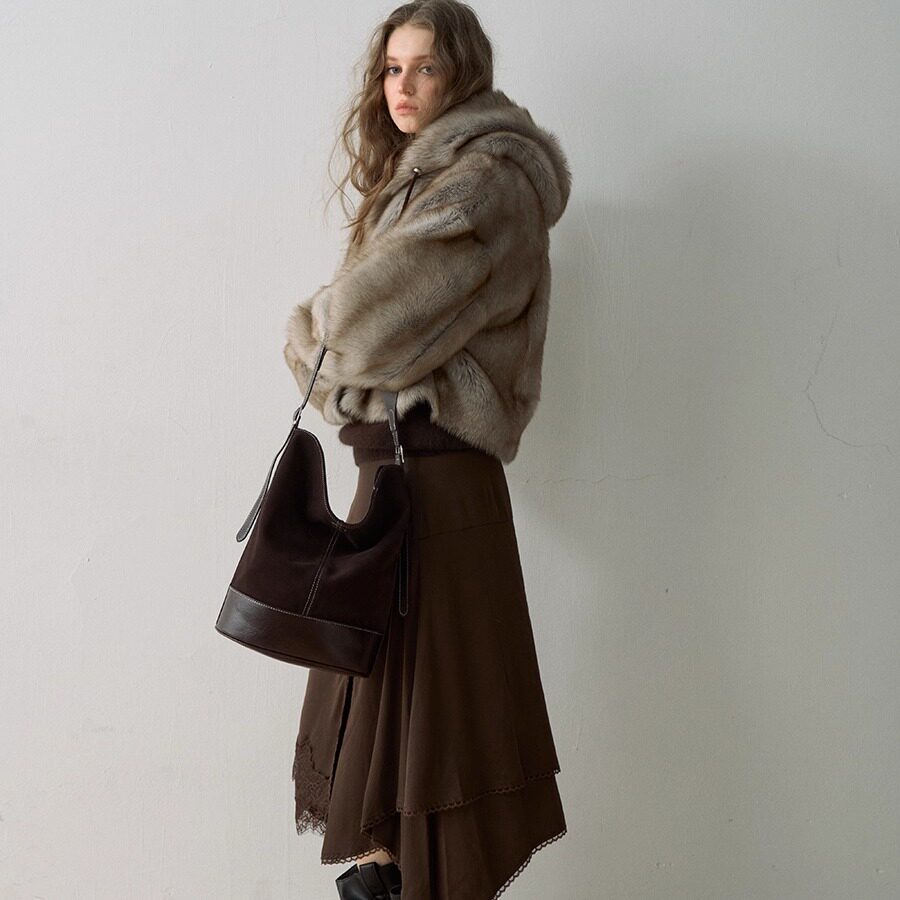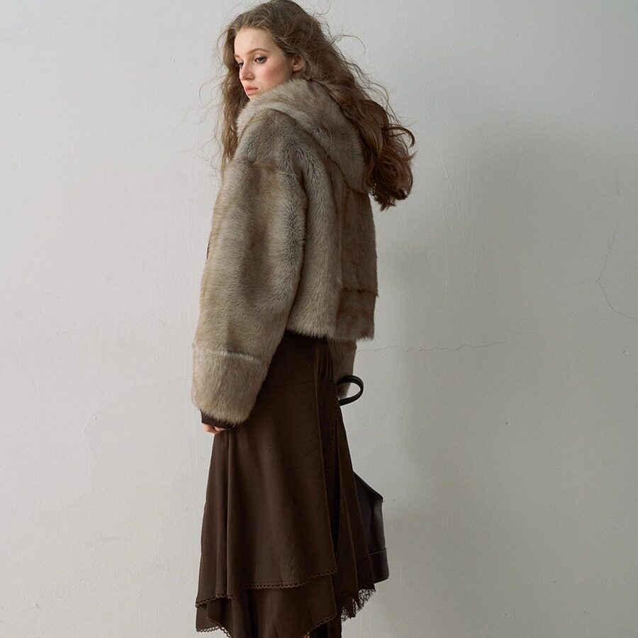 Deessesicile老钱风时髦托斯卡纳皮毛一体皮草休闲百搭连帽外套女