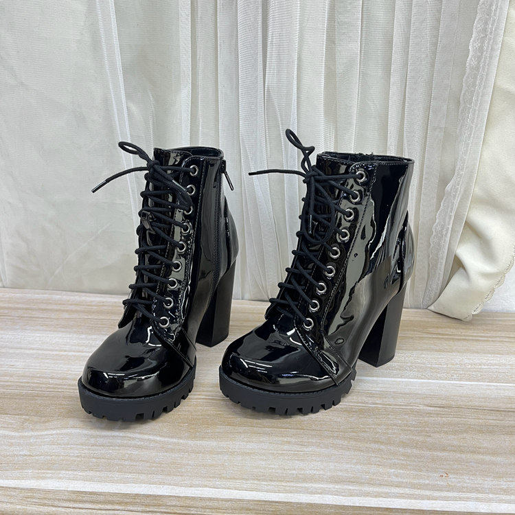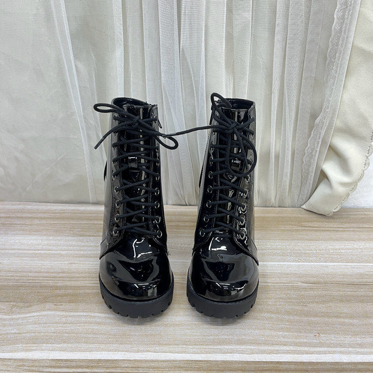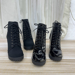 厚底黑色英伦时装 knkw流光机能酷飒短靴女秋冬新款 靴 明星同款
