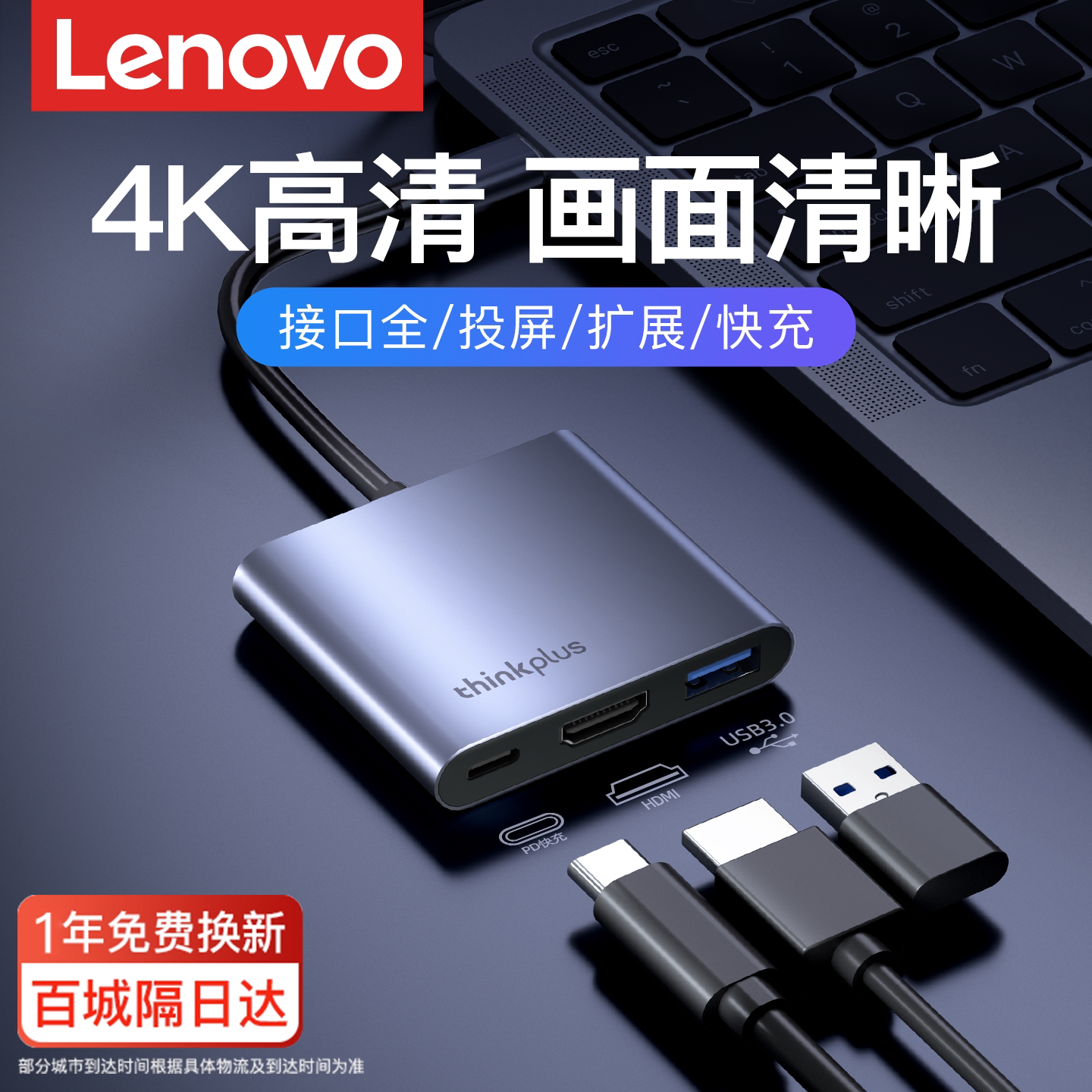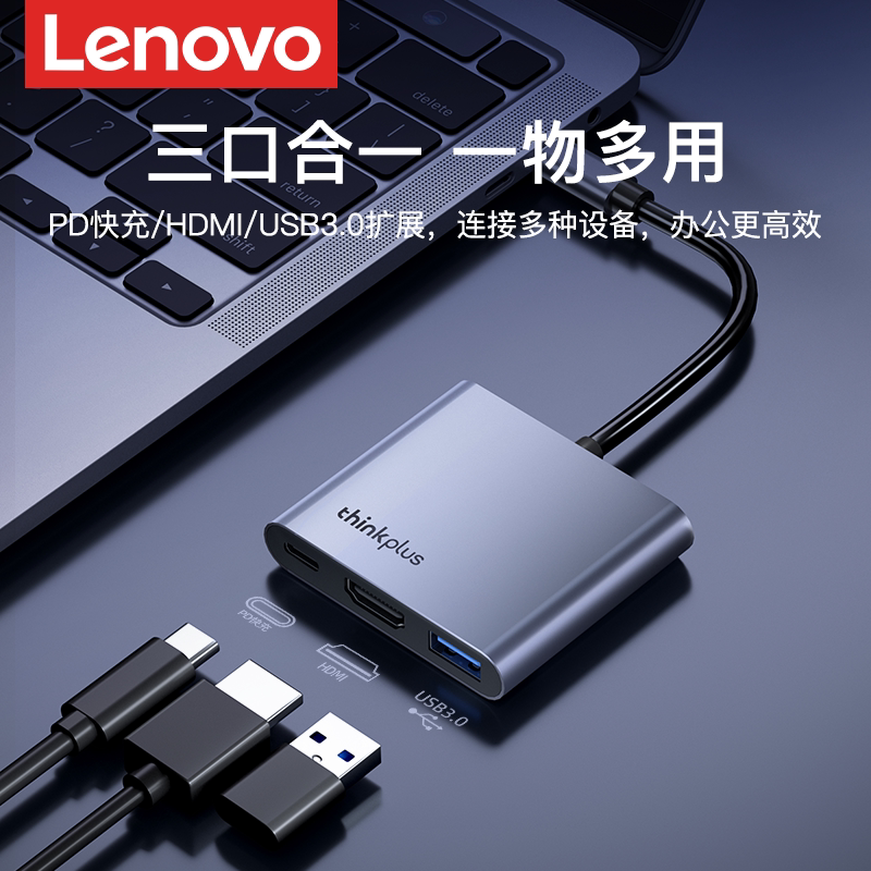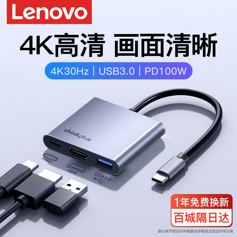 联想typec拓展坞笔记本电脑MacBook拓展坞多功能接口转换器适用ipad苹果macmini小新华为手机台式 hdmi扩展坞