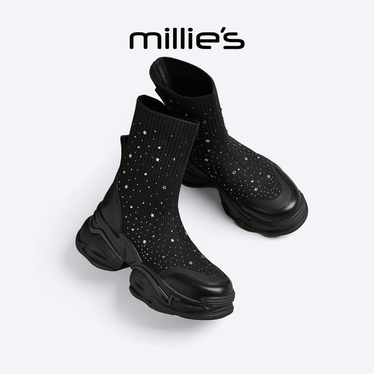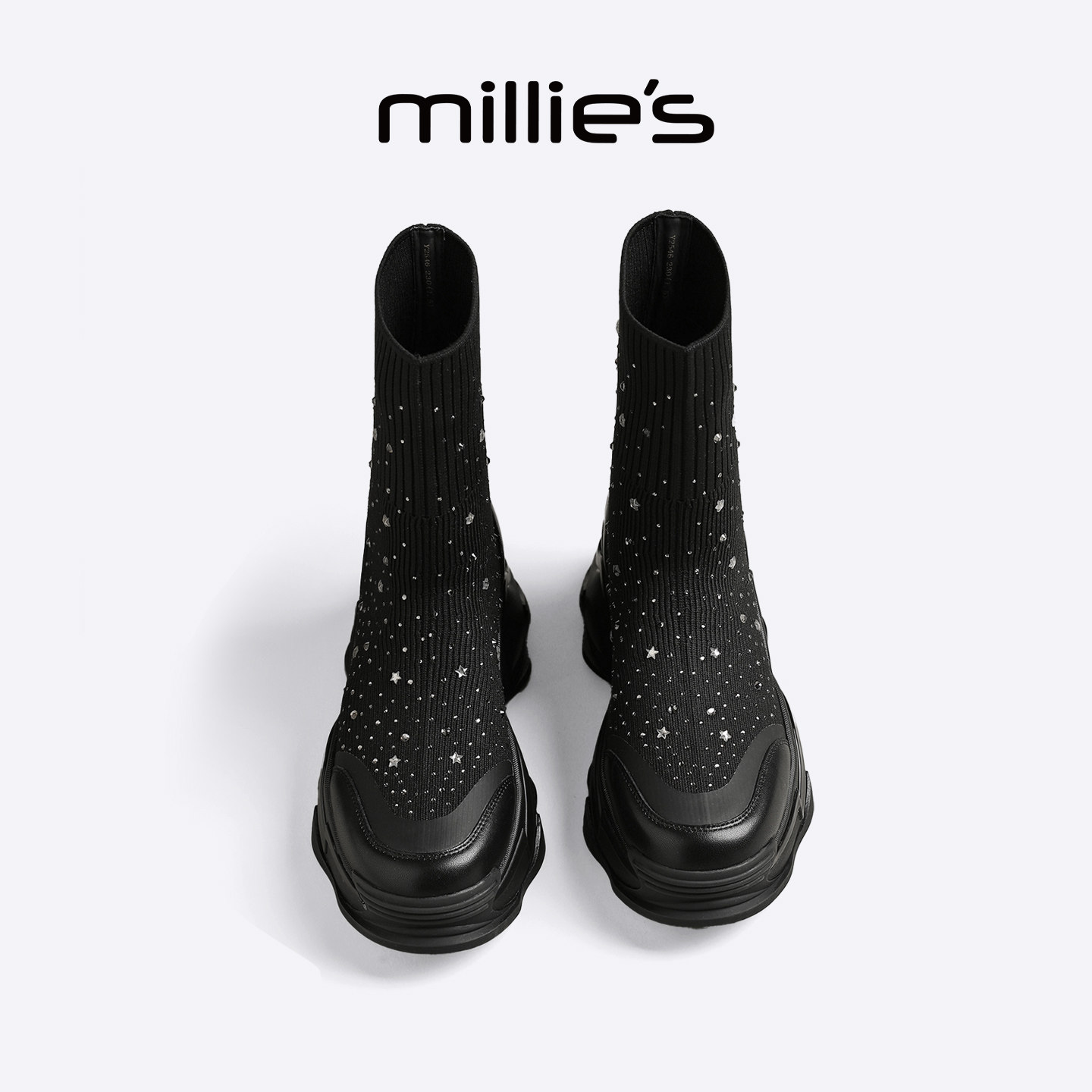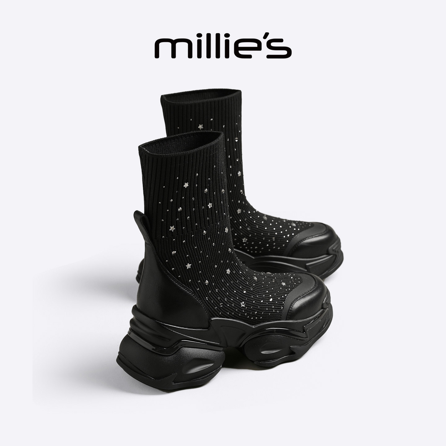 夏季 妙丽厚底袜靴女2026新款 休闲黑色弹力靴增高瘦瘦靴 MILLIE