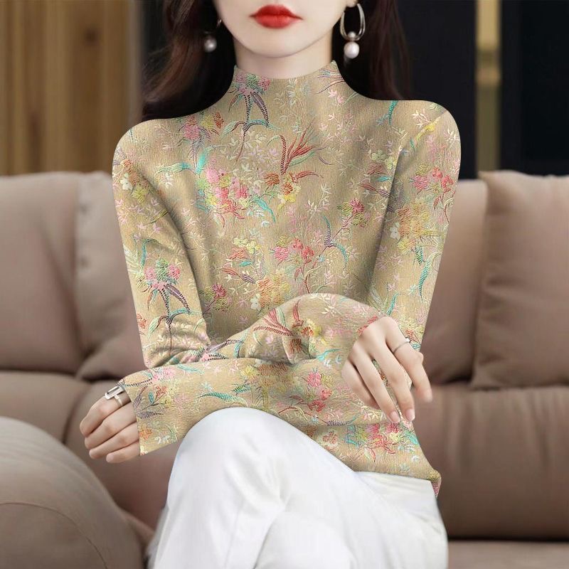 上衣妈妈装 清仓捡漏 印花T恤女半高领气质显瘦打底衫 长袖 秋冬新款
