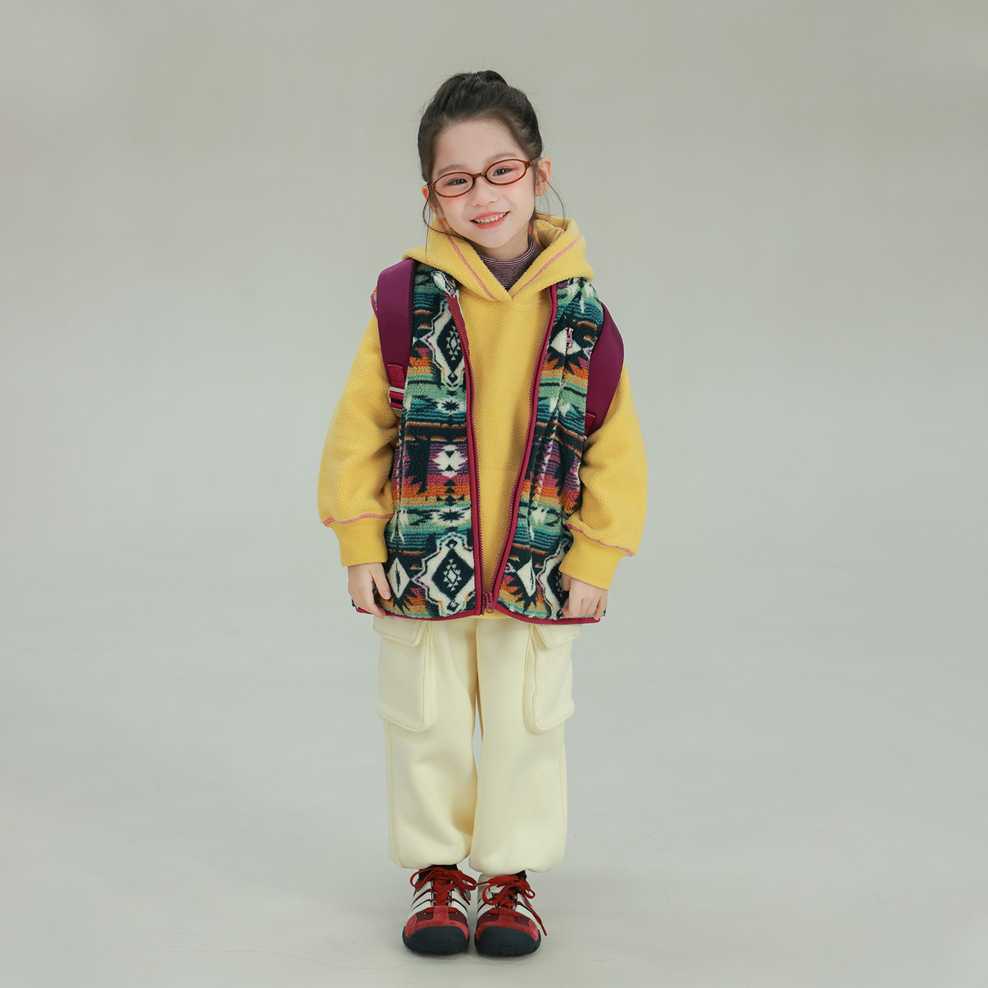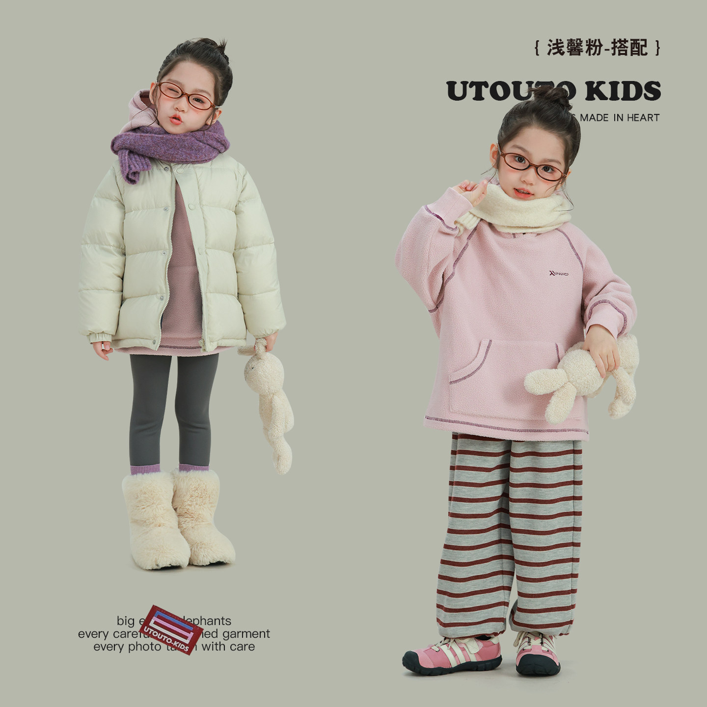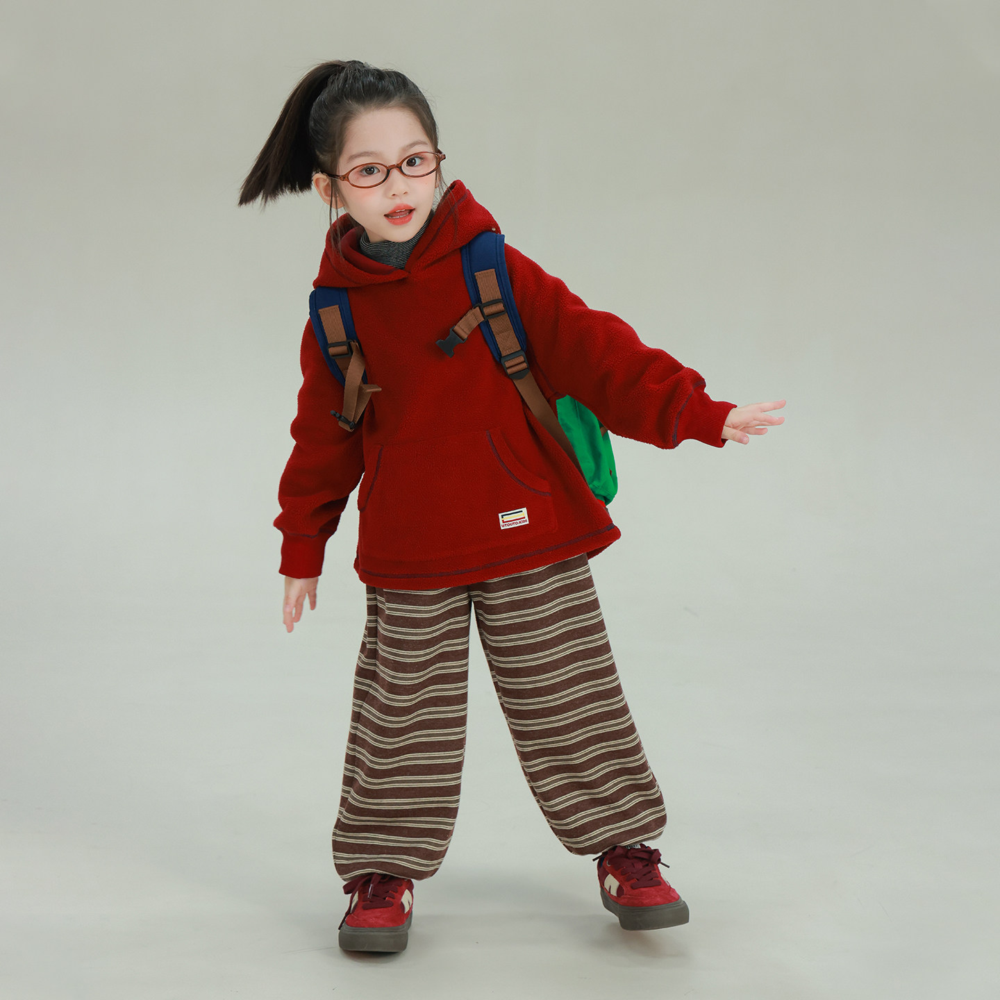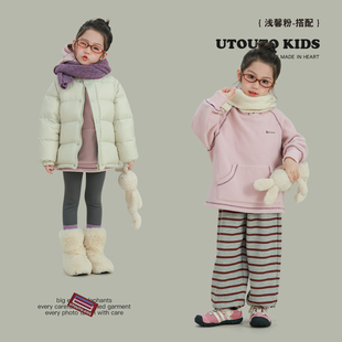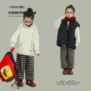 大耳象女童撞色线毛绒连帽卫衣冬季 宝儿休闲保暖加厚加绒上衣 新款