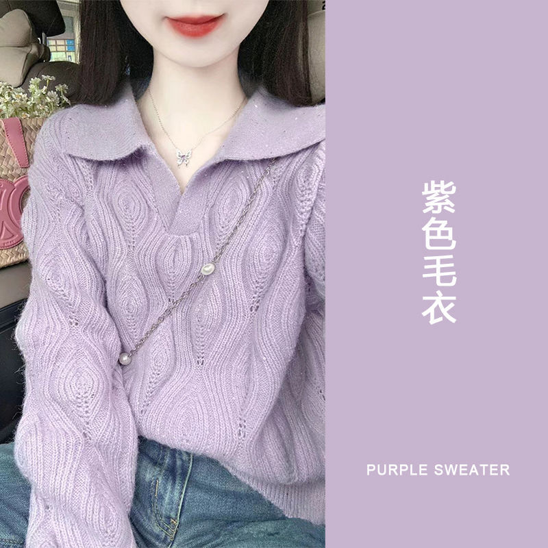 针织衫 洋气2025年秋冬毛衣长袖 宽松 女新款 软糯休闲花边圆领打底衫