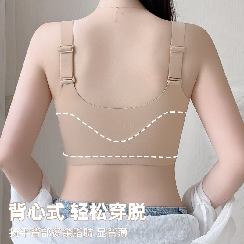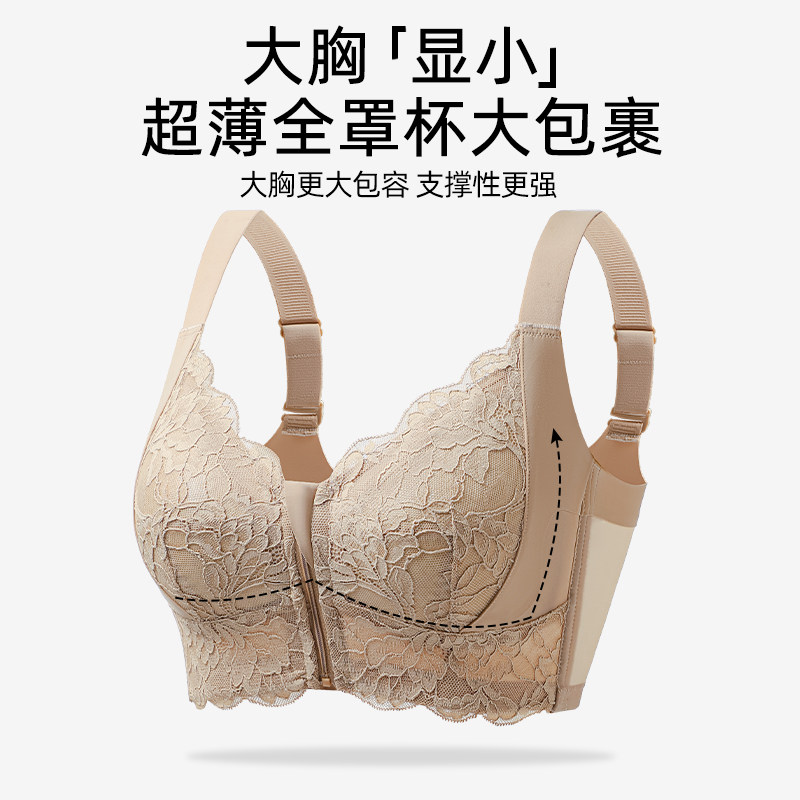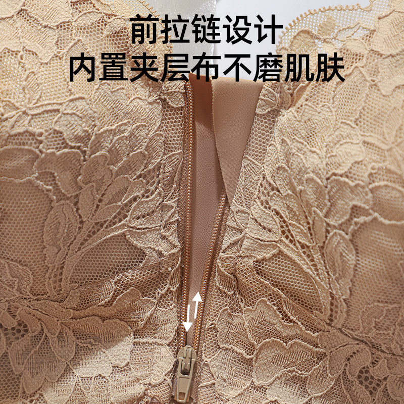 大胸显小前拉链调整型内衣女士矫正聚拢收副乳防下垂上托舒适文胸