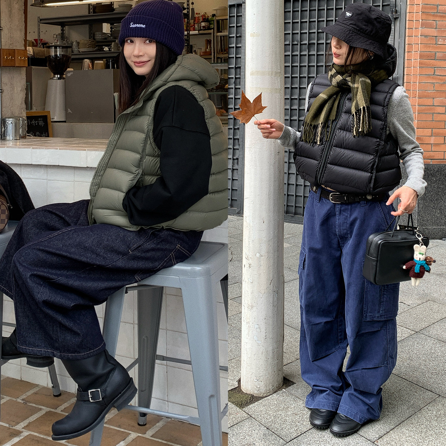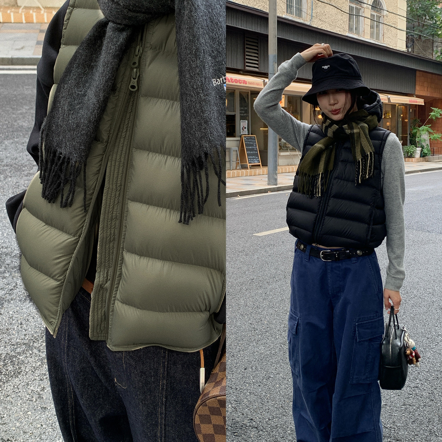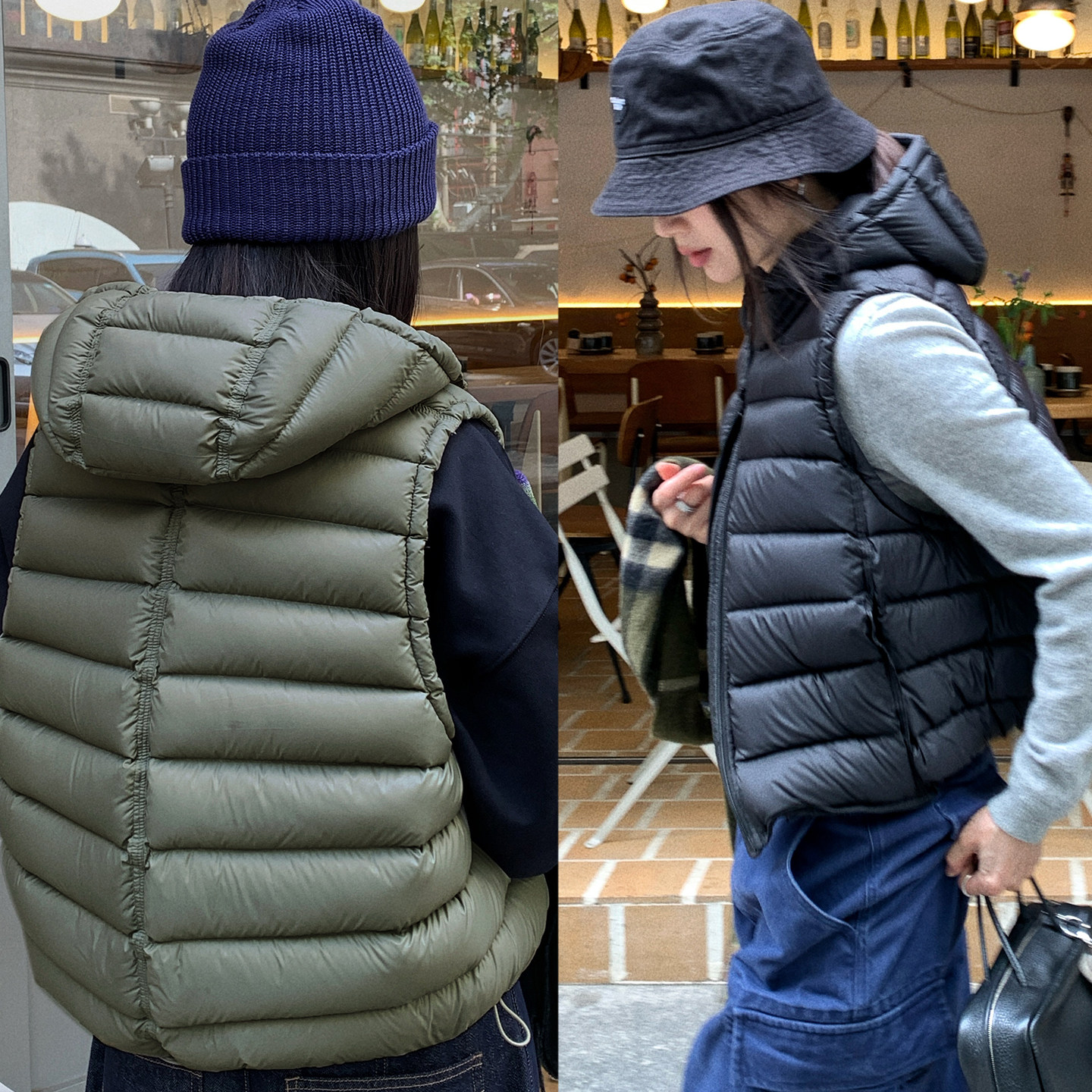 7AM10PM火山岩发热纱三星90白鸭绒马甲女 排骨连帽羽绒服背心外套