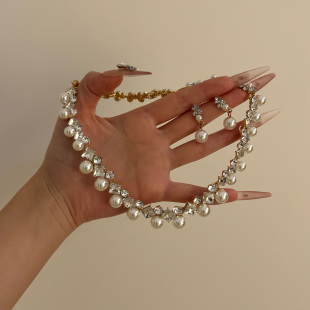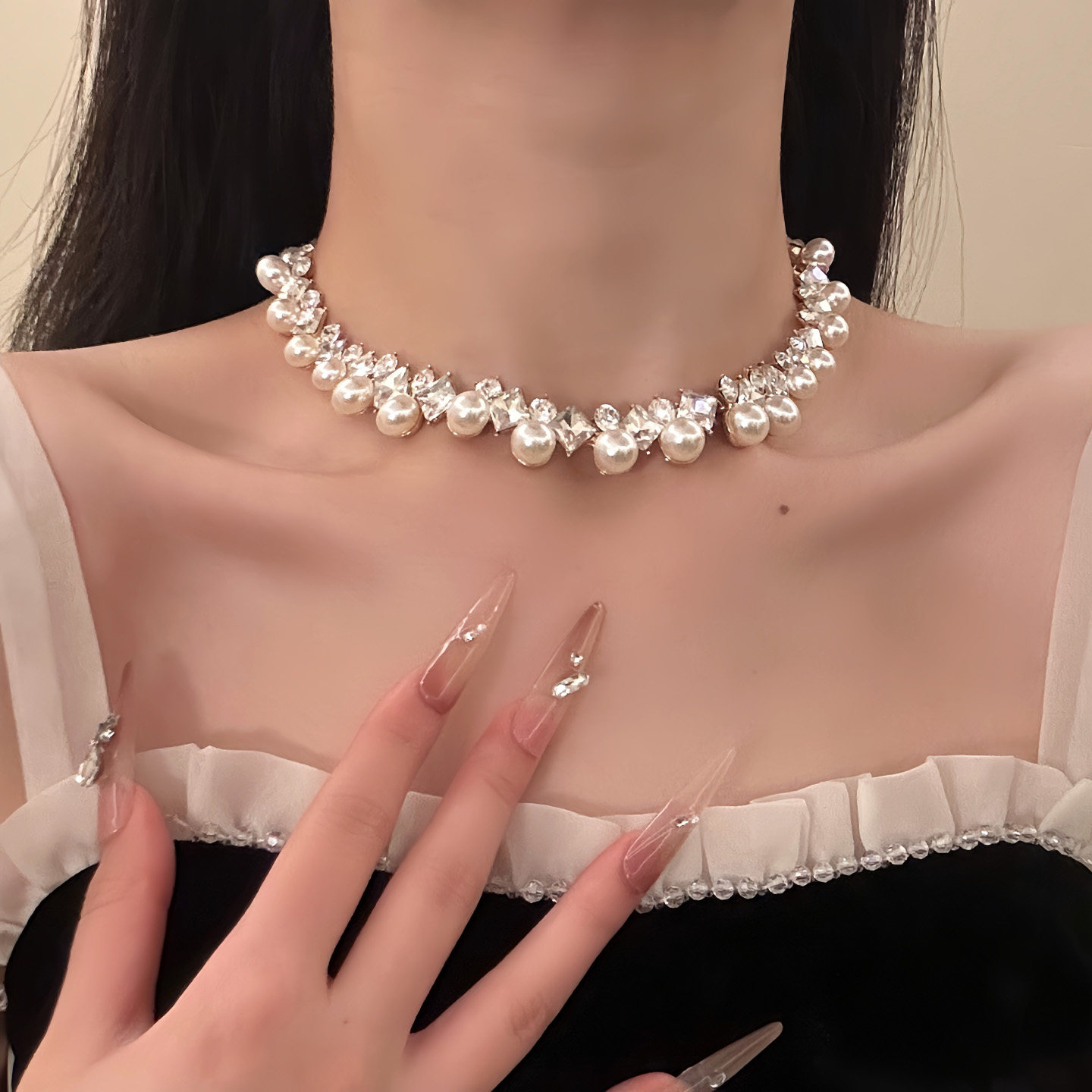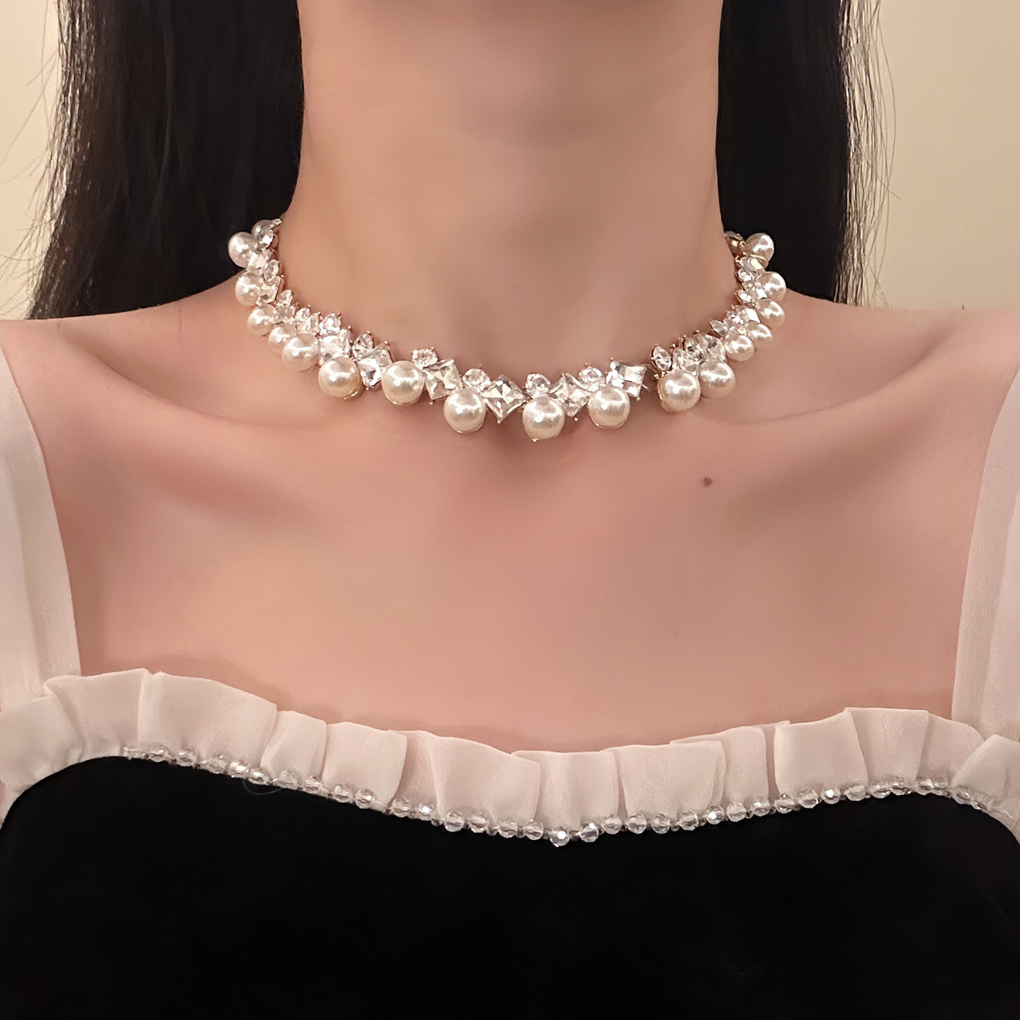 HEY 优雅气质晚礼服锁骨链 TAO轻奢复古水钻珍珠choker项链女时尚