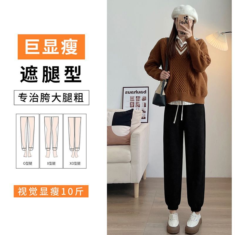 子休闲卫裤 女秋冬加绒显瘦束脚百搭条绒裤 复合运动裤 秋冬款