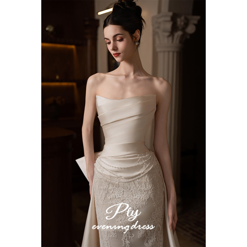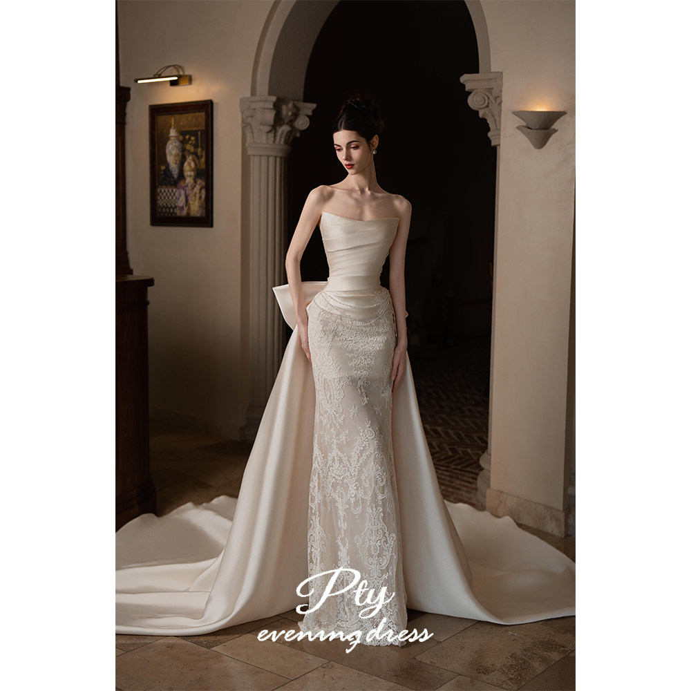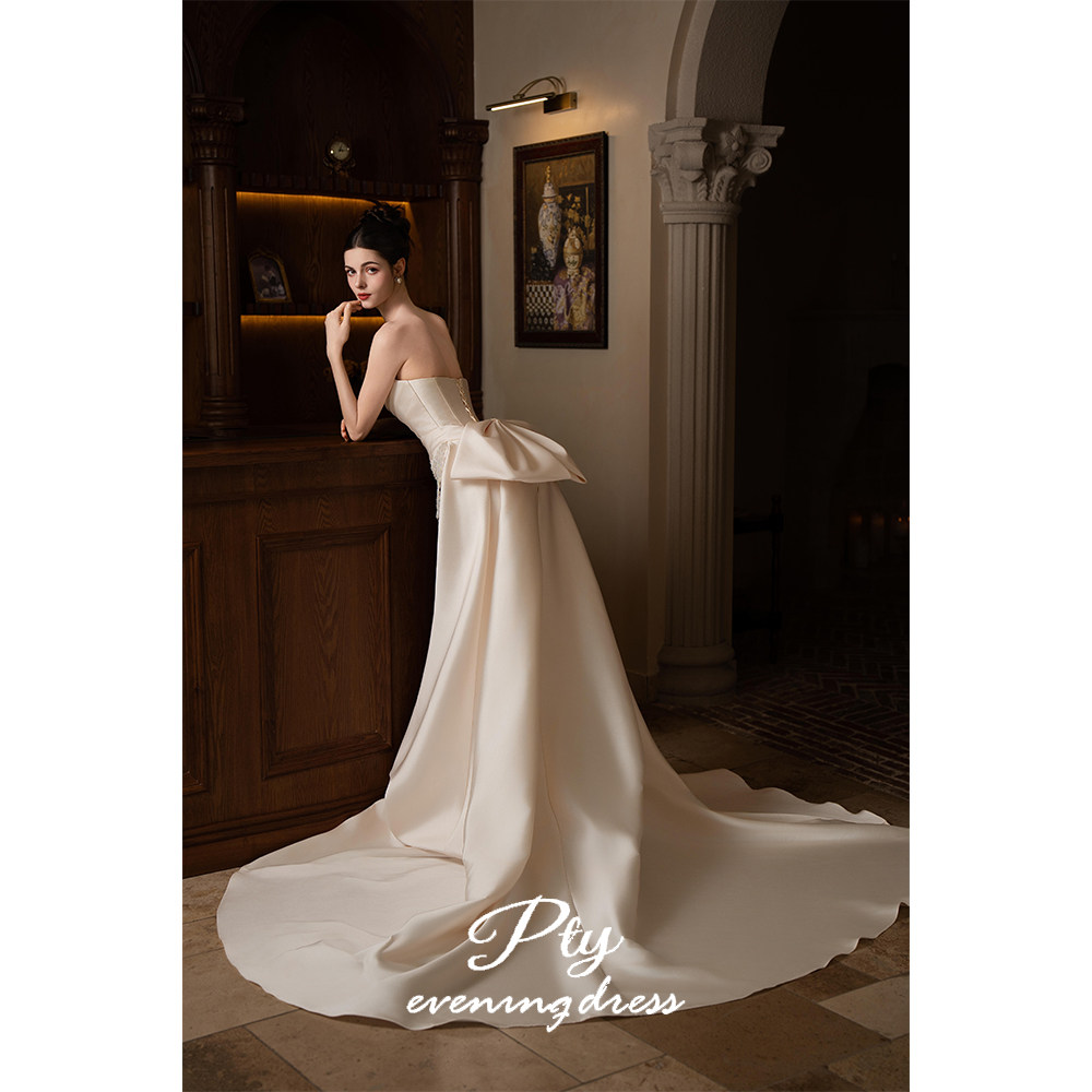 法式 新娘结婚轻奢小众高级感出门纱大拖尾森系 缎面轻婚纱2025新款