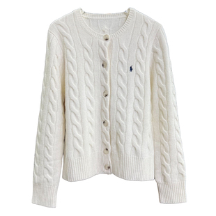 R858 毛衣女 羊绒羊毛麻花圆领针织开衫 秋冬高ji感单品
