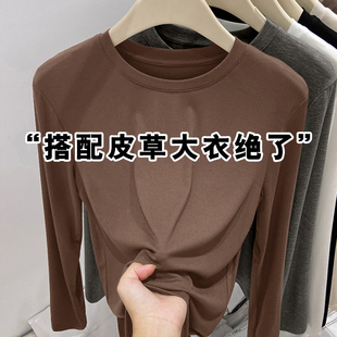 洋气显瘦软糯打底衫 内搭薄款 上衣 t恤女2025秋冬新款 白色圆领长袖