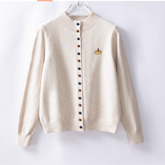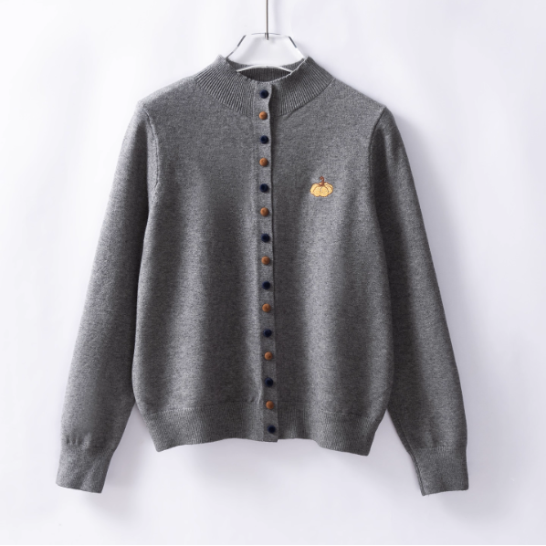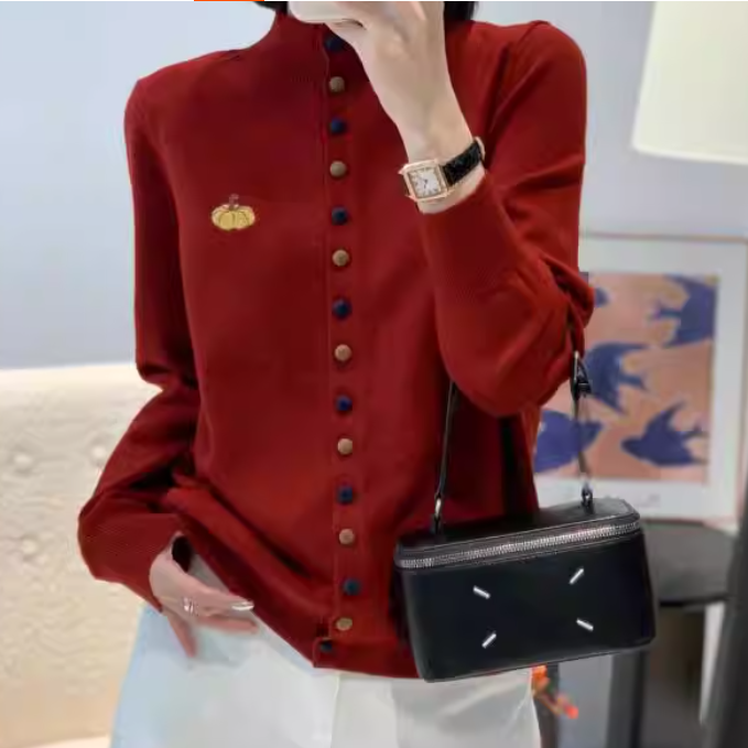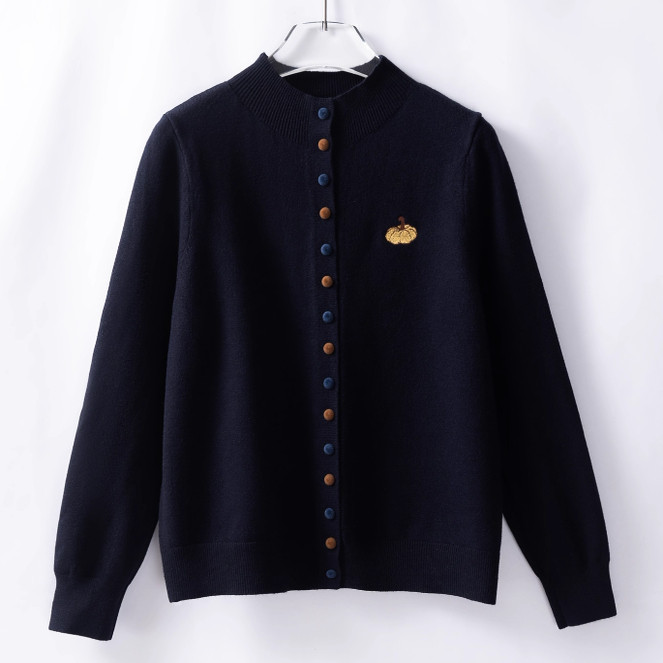 女彩扣加厚毛衣外套 小南瓜刺绣深红色立领单排扣针织衫 冬季 新款