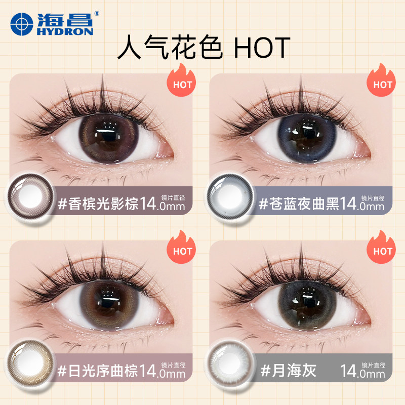 官方 海昌星眸美瞳月抛2片黑色自然小直径大隐形眼镜正品 自营