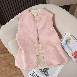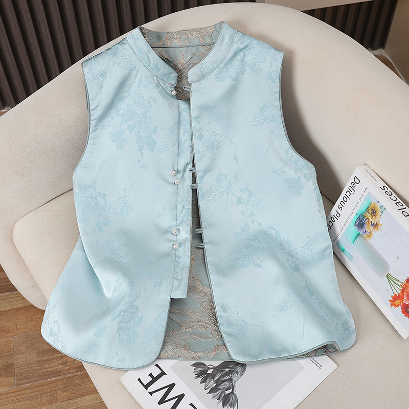 新中式 织锦提花双面穿立领休闲百搭 国风马甲女背心上衣2025春秋季