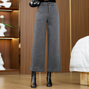 阔腿裤 黑灰色加厚直筒裤 羊毛呢八分九分裤 2025加绒糯米裤 女秋冬季