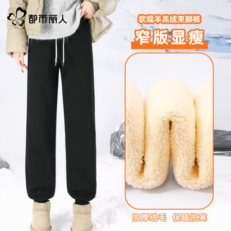 羊羔绒运动裤 都市丽人加绒裤 保暖棉裤 卫裤 子女加厚秋冬2025新款