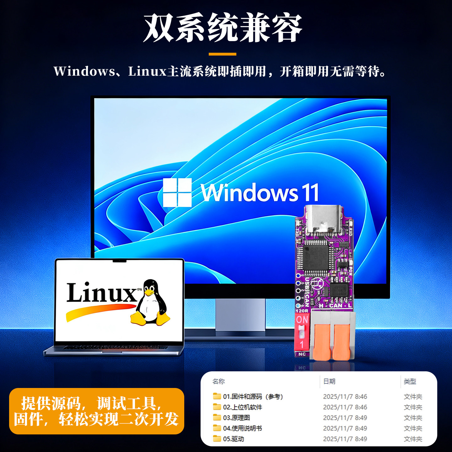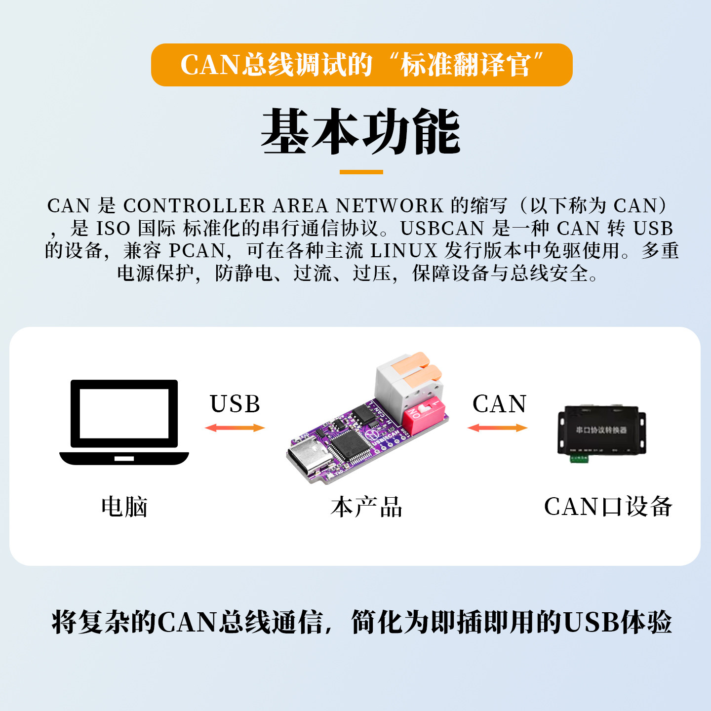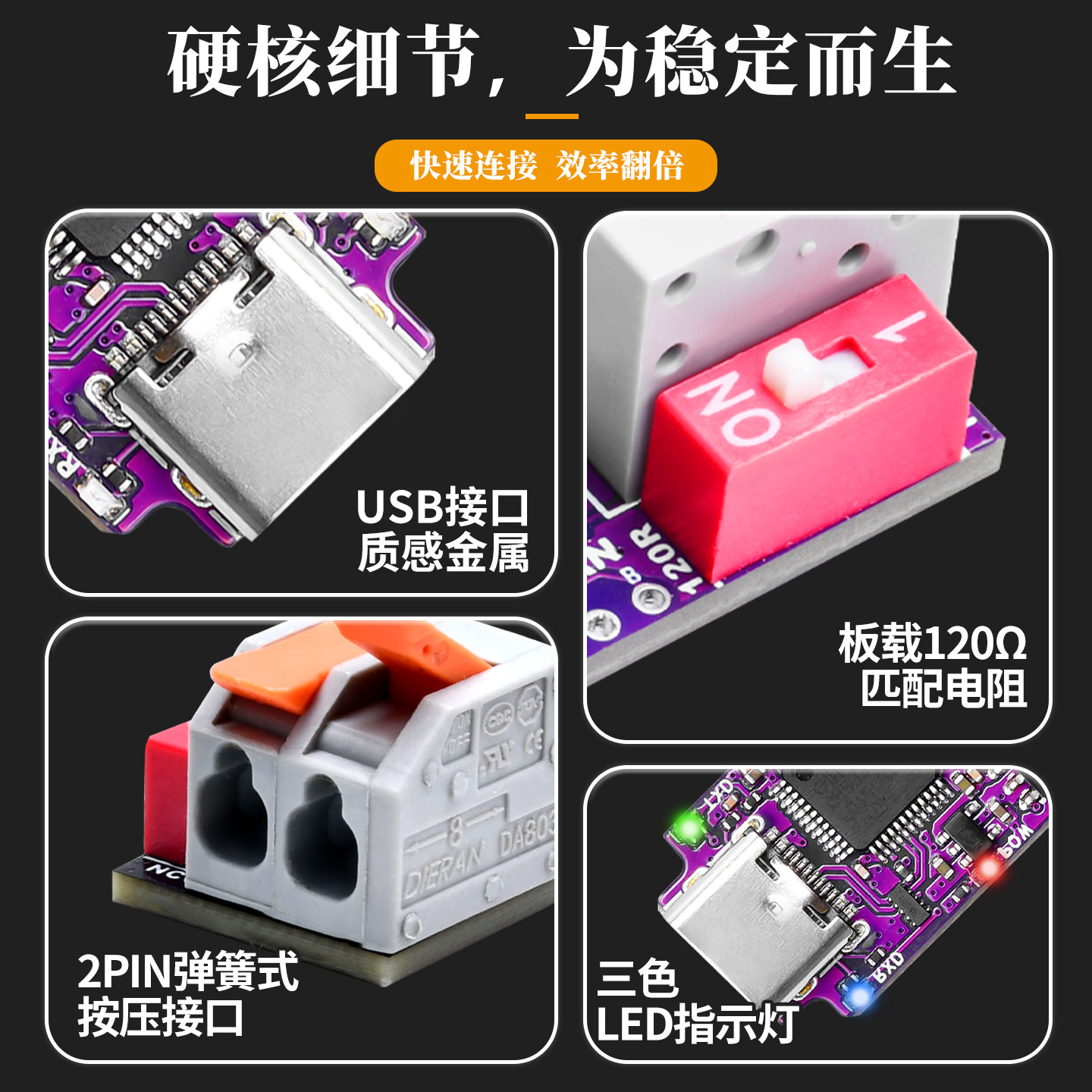 USB转CAN转换器模块总线调试工具兼容多系统高速通信模块多重保护