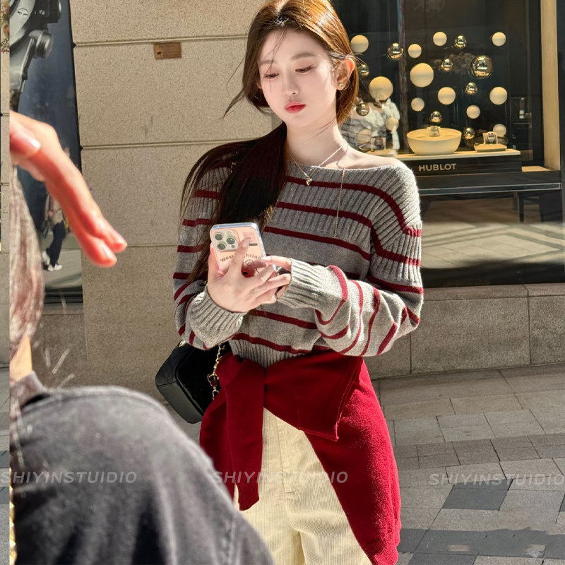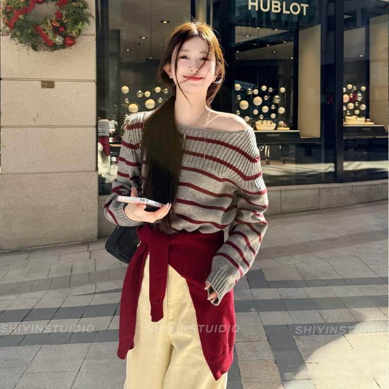 千禧风复古酒红色披肩腰带女新款 针织外搭小坎肩配毛衣腰间配饰品