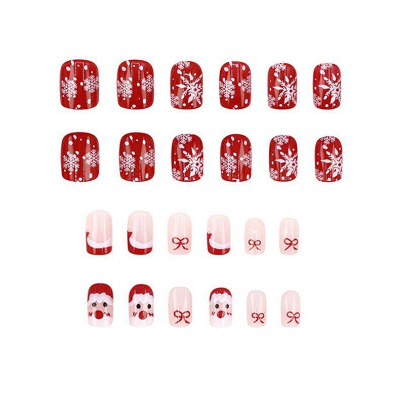 圣诞节氛围穿戴甲圣诞老人麋鹿雪花袜子美甲片红色节日喜庆假指甲