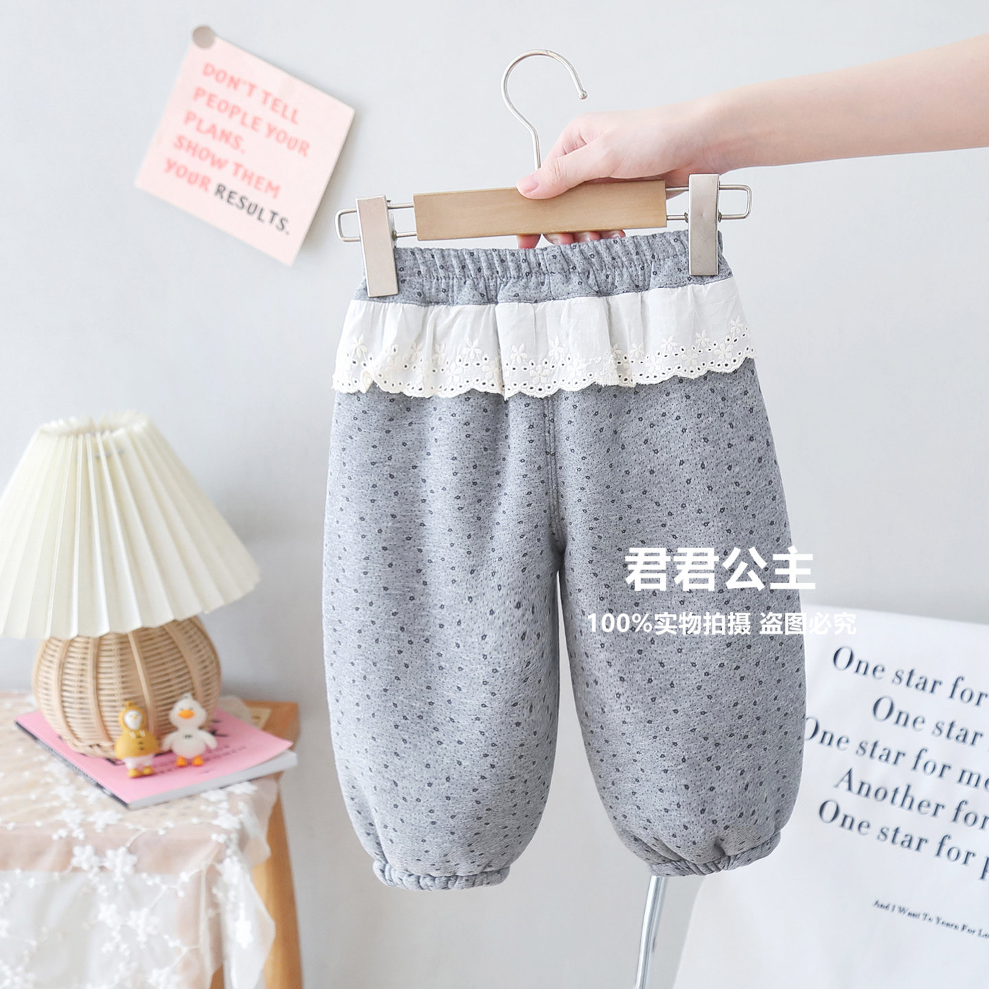 子女宝宝棉裤 中小童装 婴儿蕾丝裤 女童加绒加厚碎花休闲裤 百搭 冬装