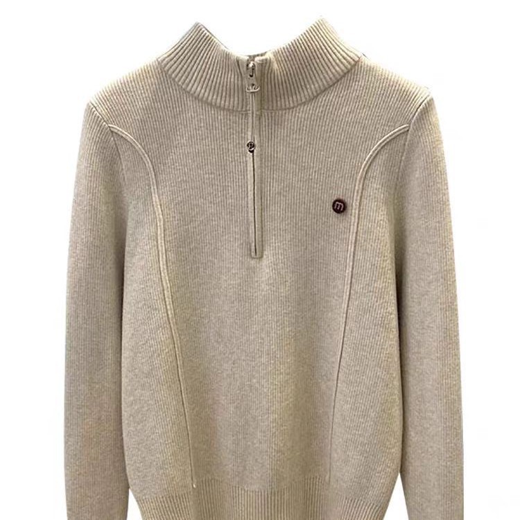 加厚立领半开领拉链一体绒高领毛衣女秋冬新款 上衣 内搭加绒针织衫