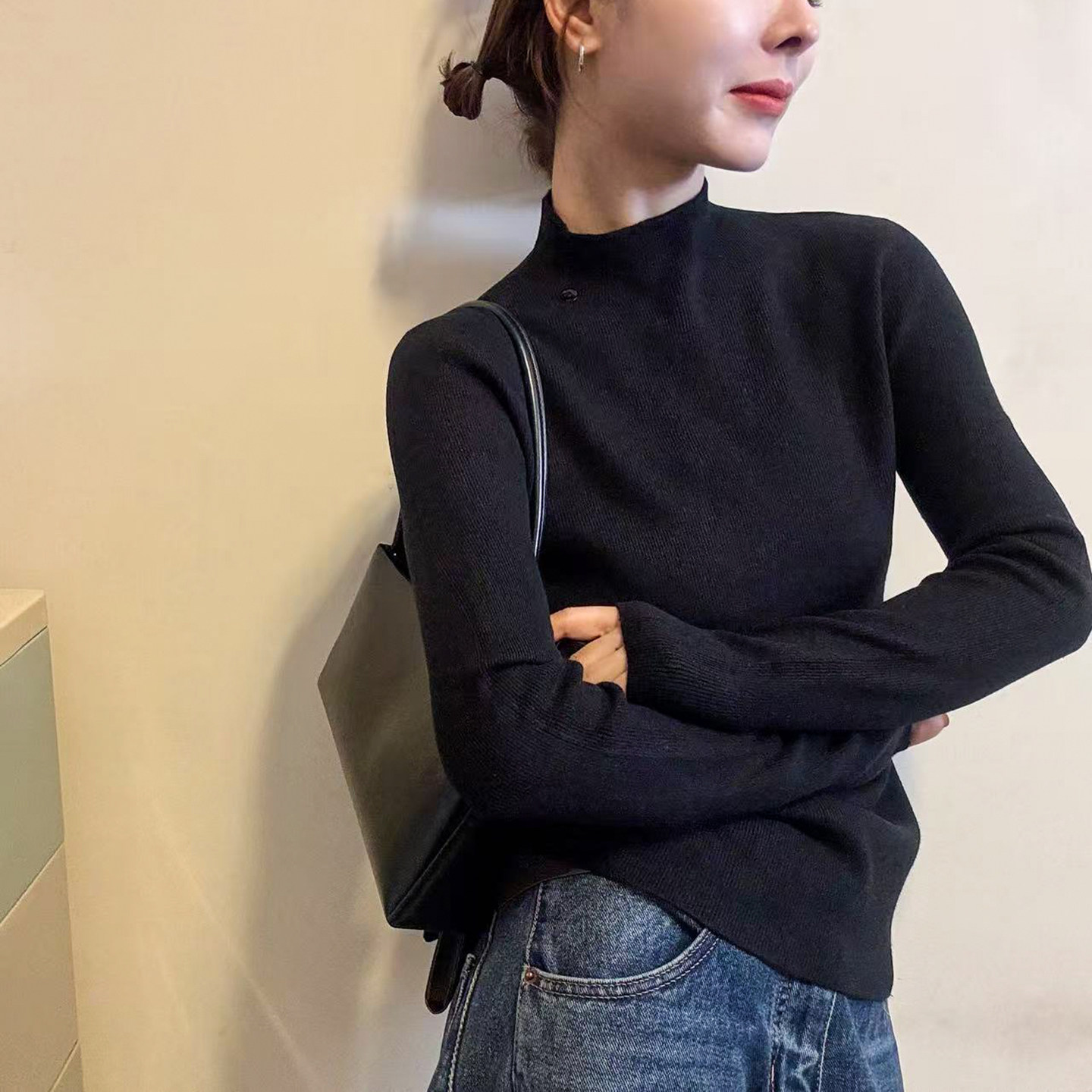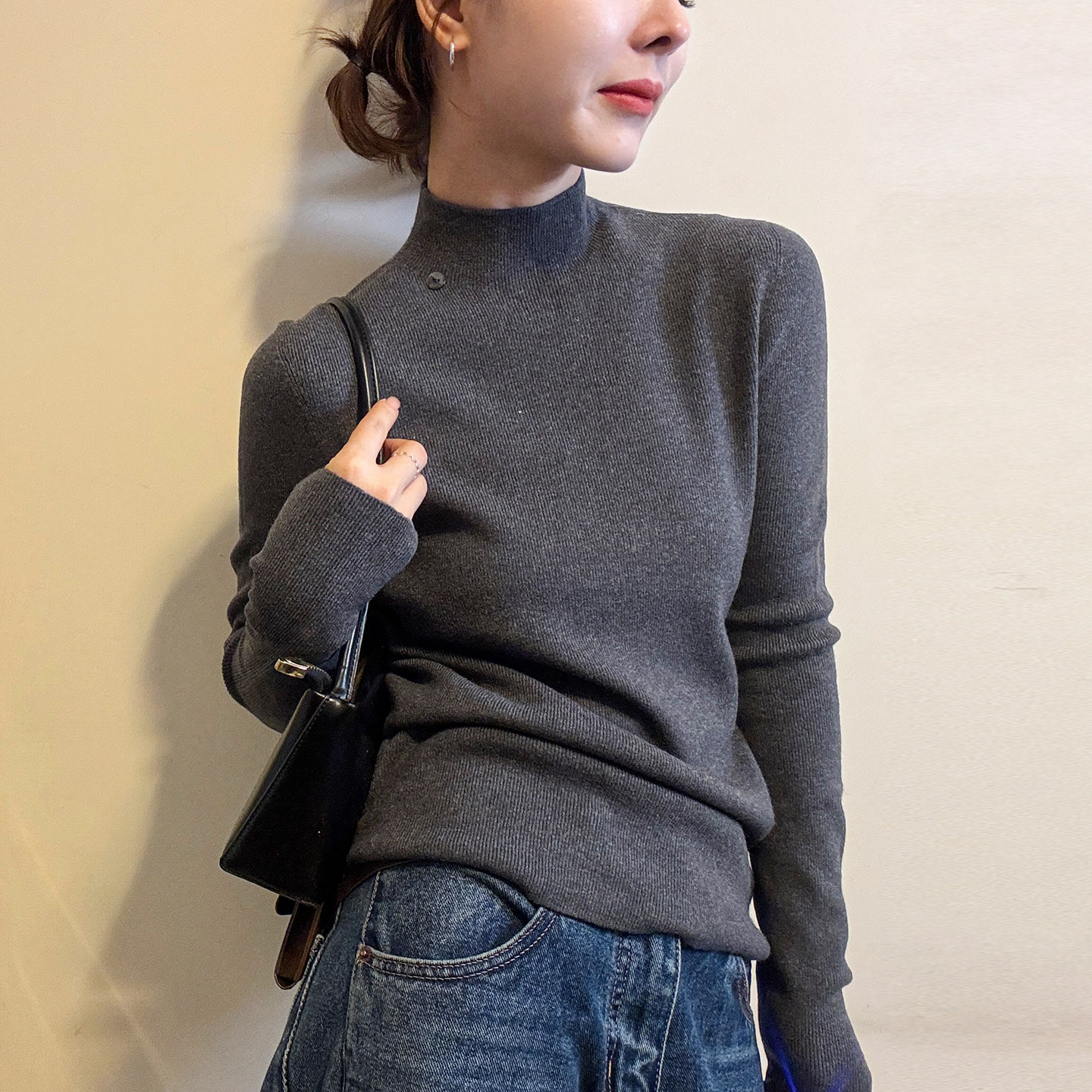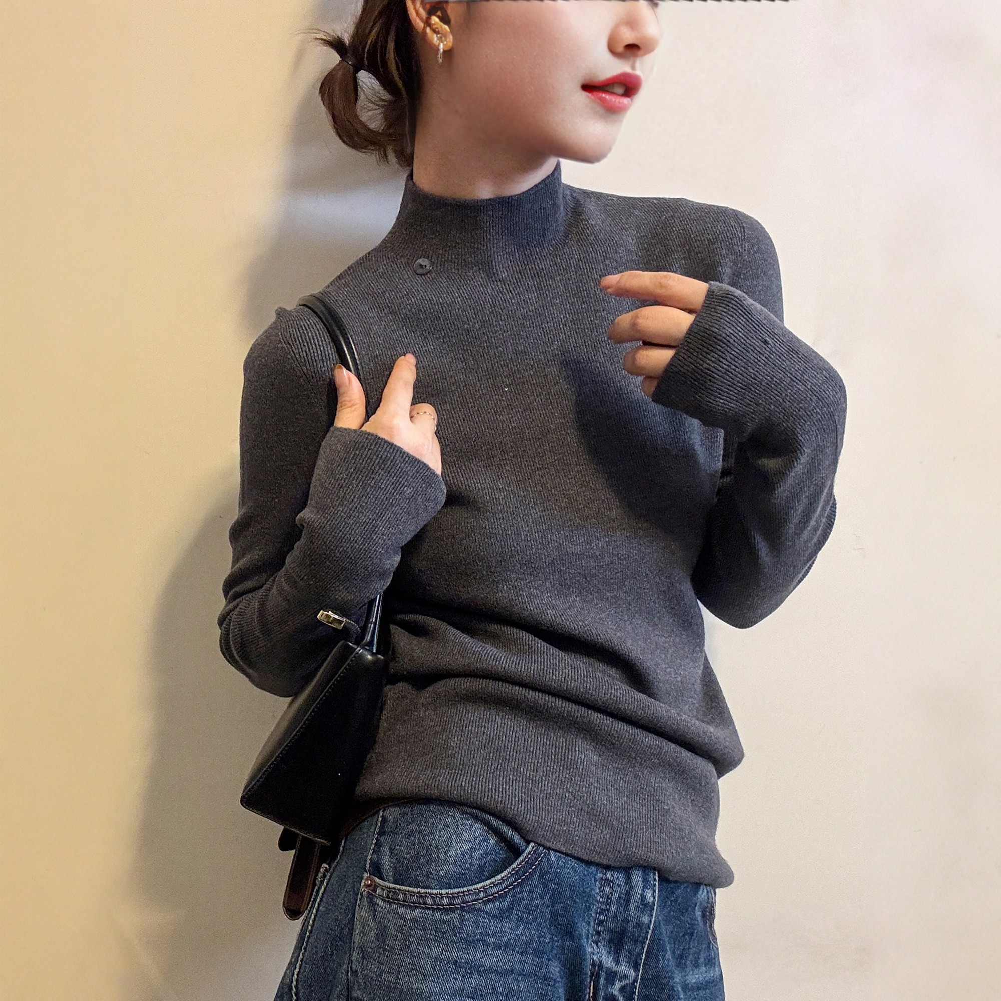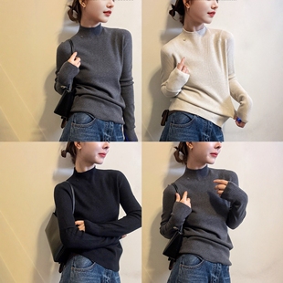 打底衫 贝壳扣半高领细羊毛针织衫 欧货女装 新款 潮 女欧洲站2025冬装