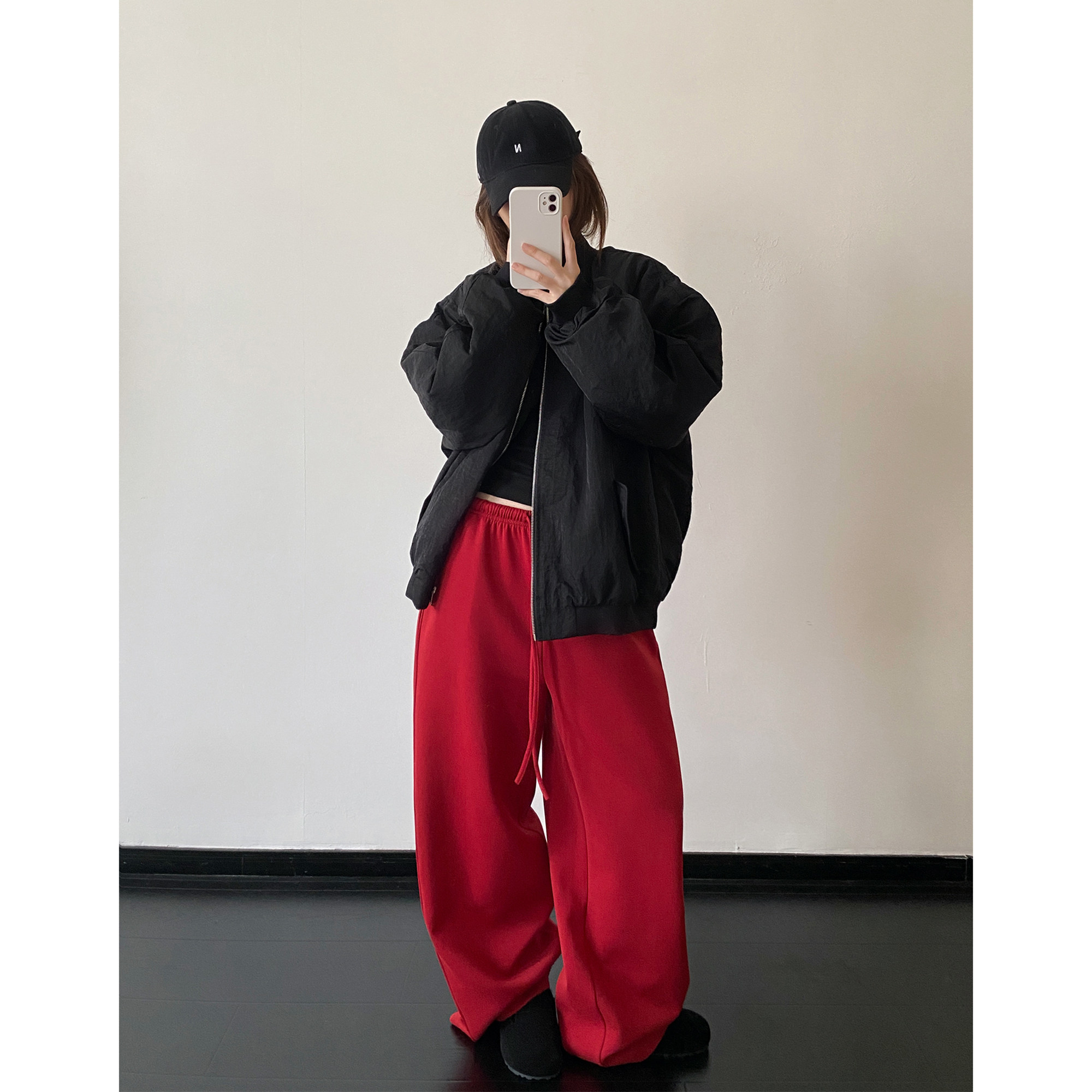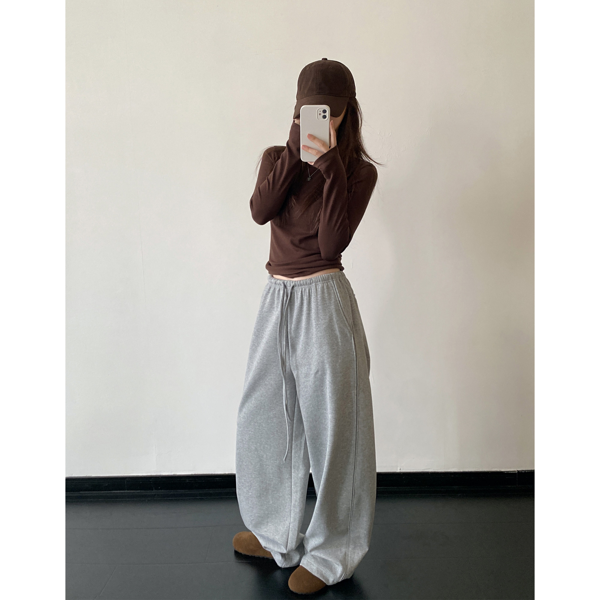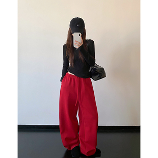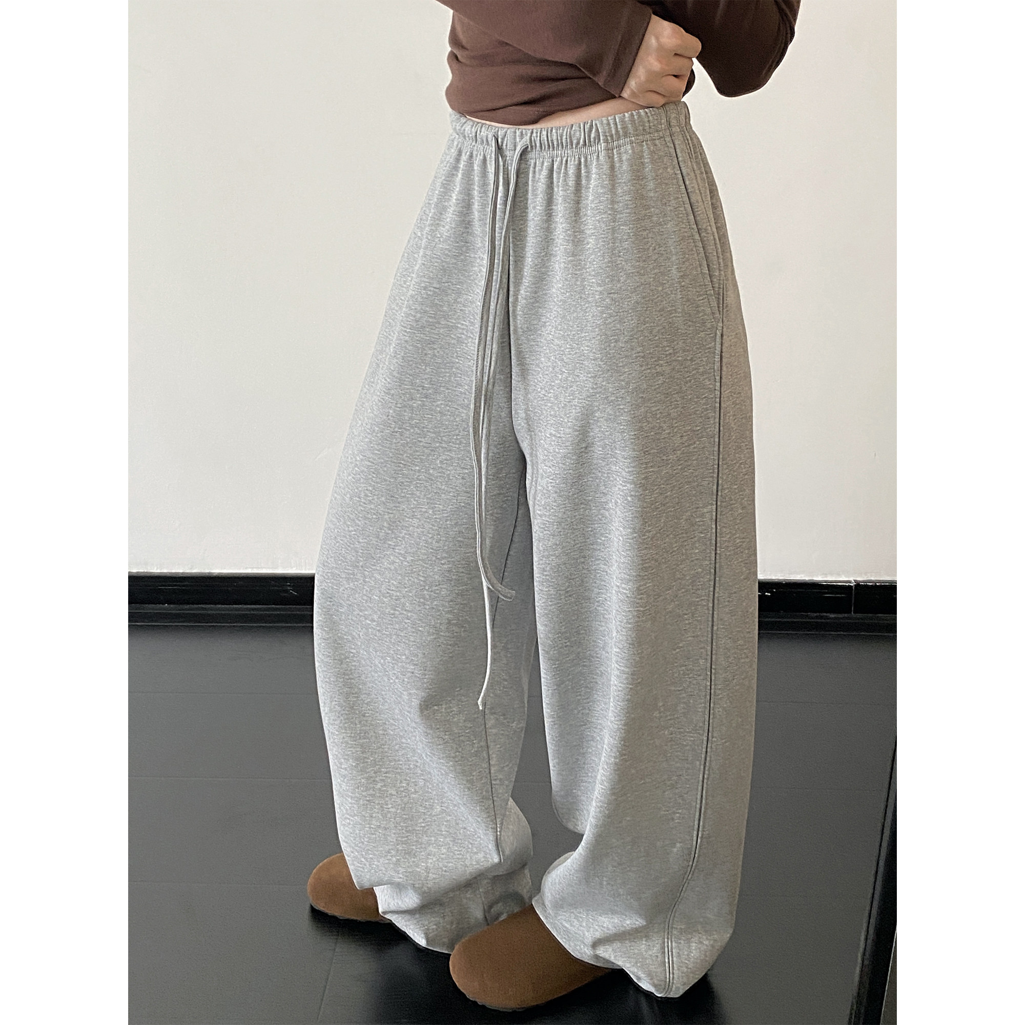 重工阔腿裤 女秋冬款 加绒加厚极简感好裤 长裤 型抽绳弯刀卫裤 sun柚