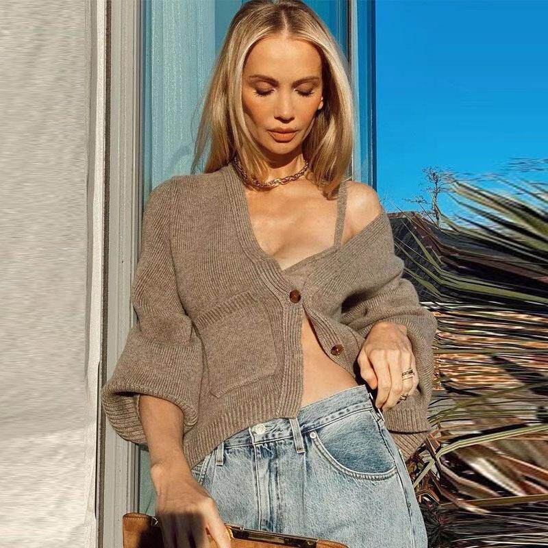 V领法式 Reformation毛衣开衫 About 上衣羊毛针织保暖外套 现货