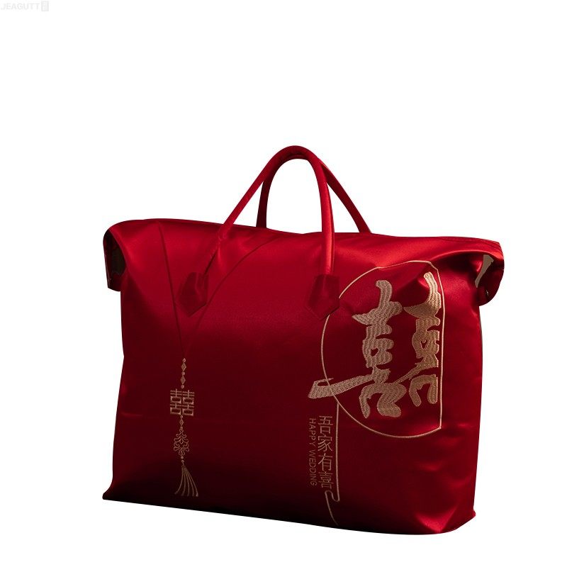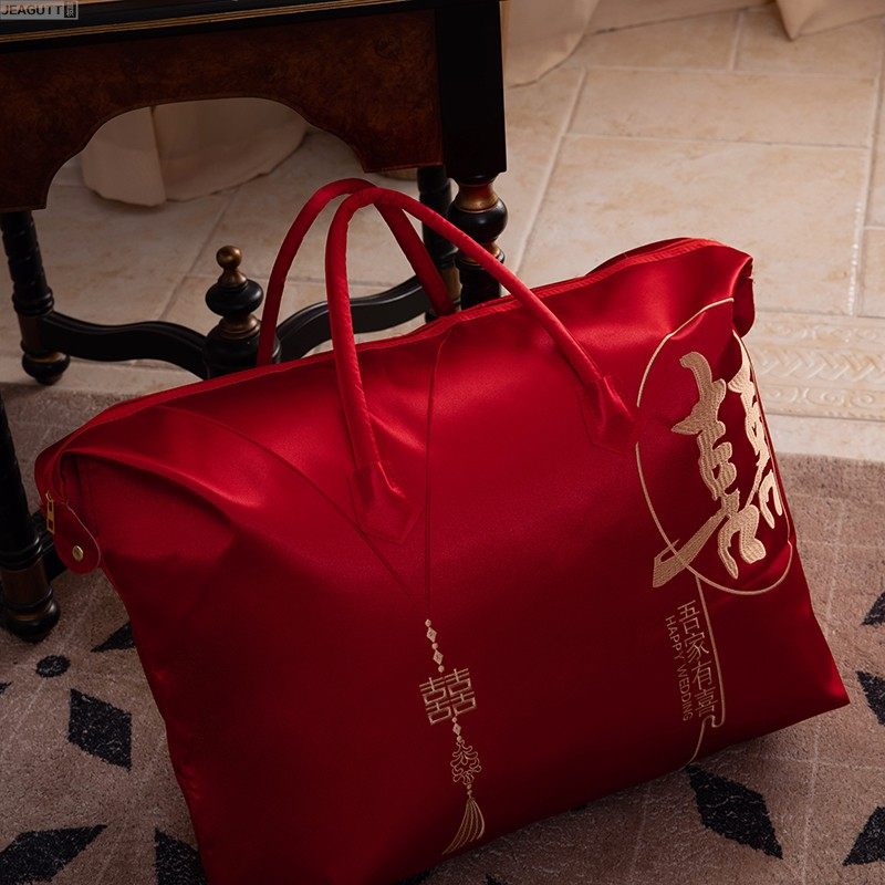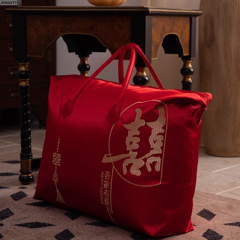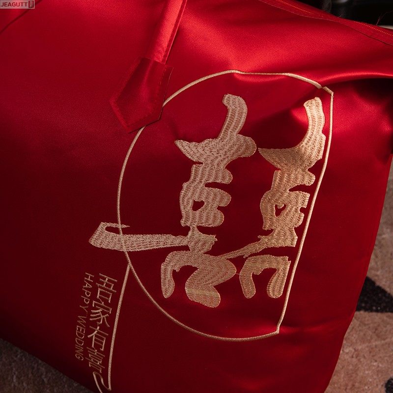 袋子婚庆四件套缎面喜庆手提结婚陪嫁收纳袋 包装 红色喜被装 棉被