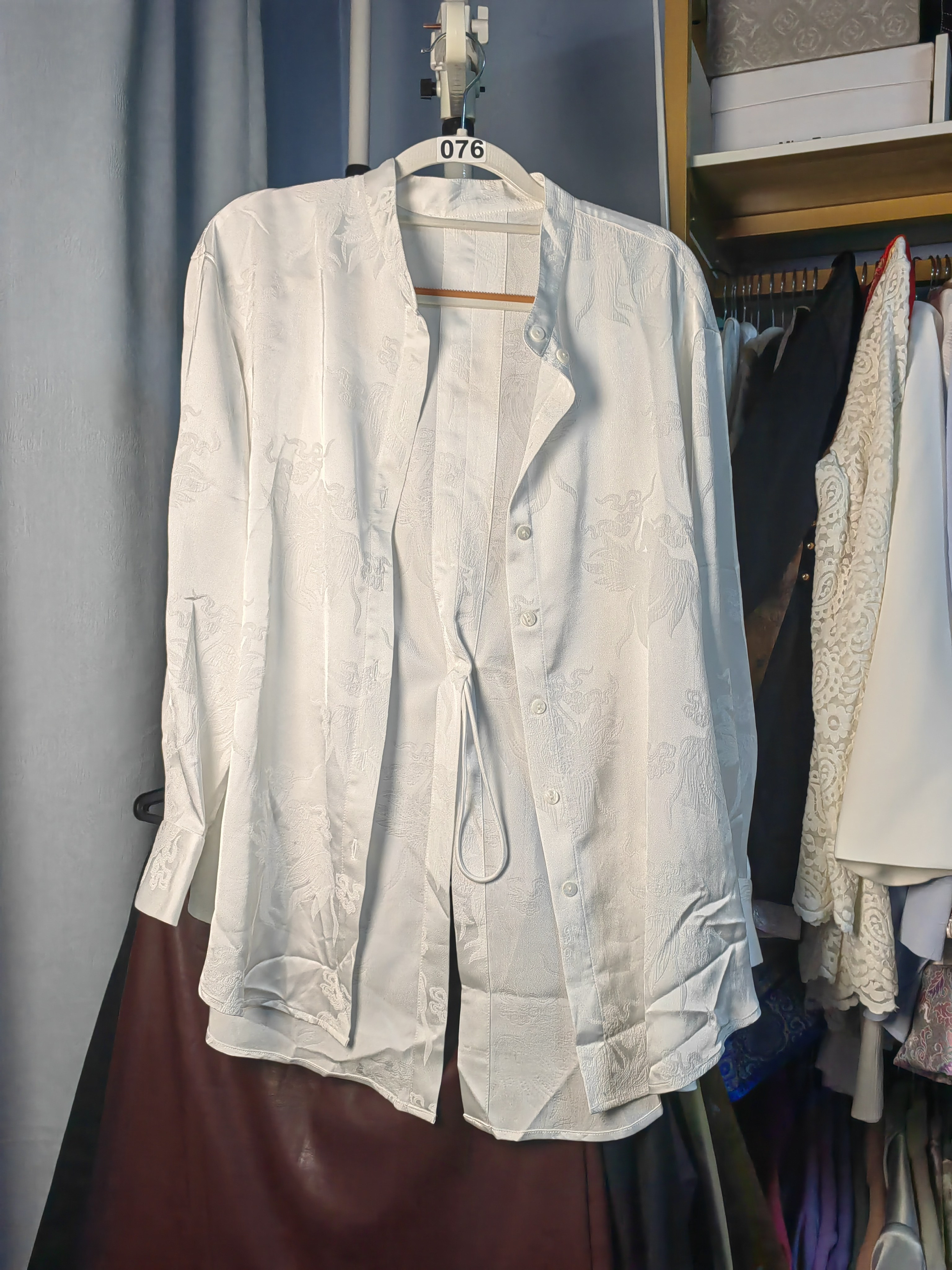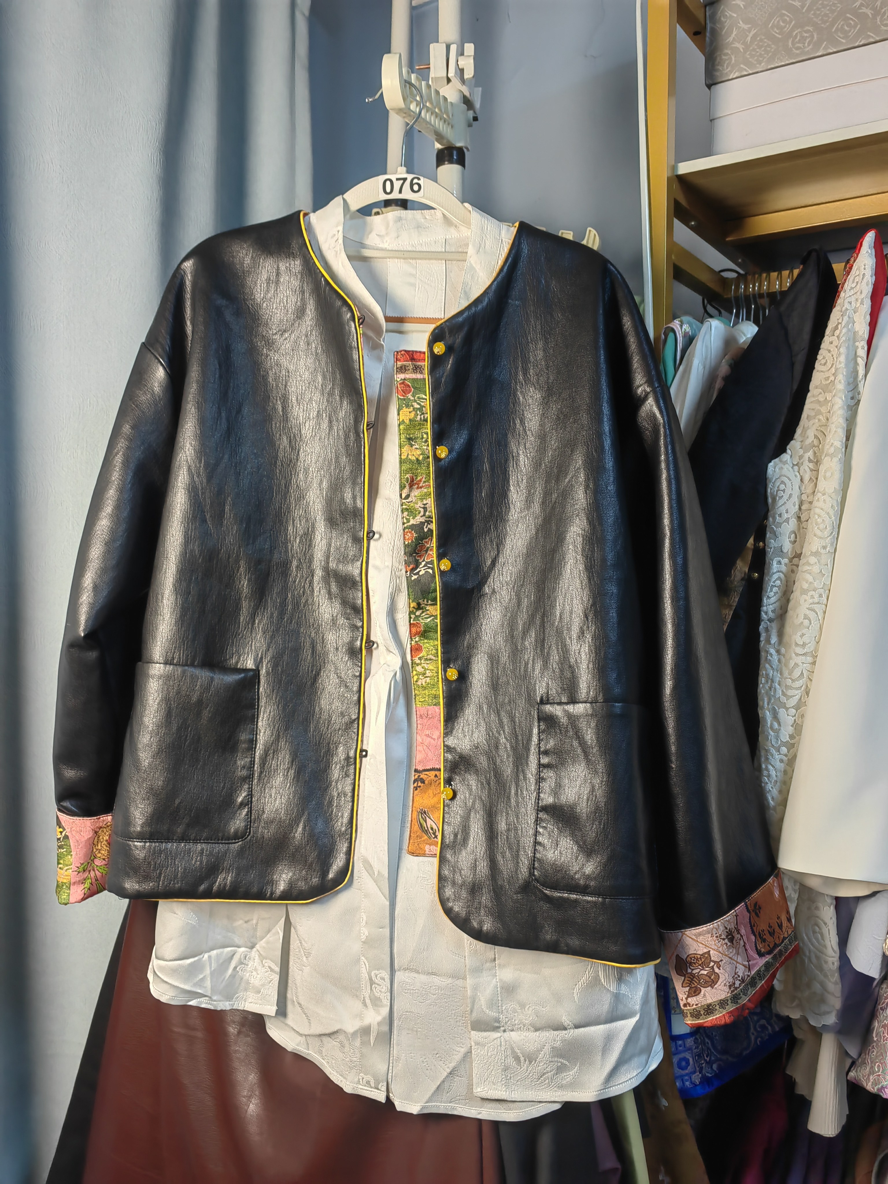 110 提花衬衫 140斤 羊皮拼接宋锦外套 罗绮者76号黑色双面穿皮衣