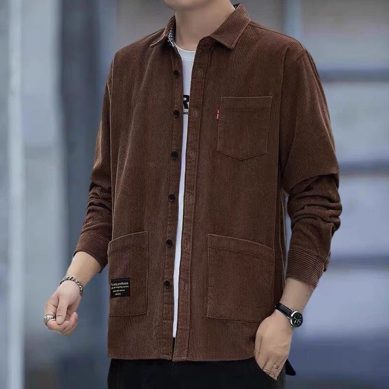 灯芯绒长袖 休闲宽松港风衬衣男工装 衬衫 外套2025款 上衣 男士 秋季
