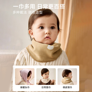 婴儿围巾秋冬款 女童婴幼儿保暖防风围脖毛绒 洋气女宝宝三角巾冬季