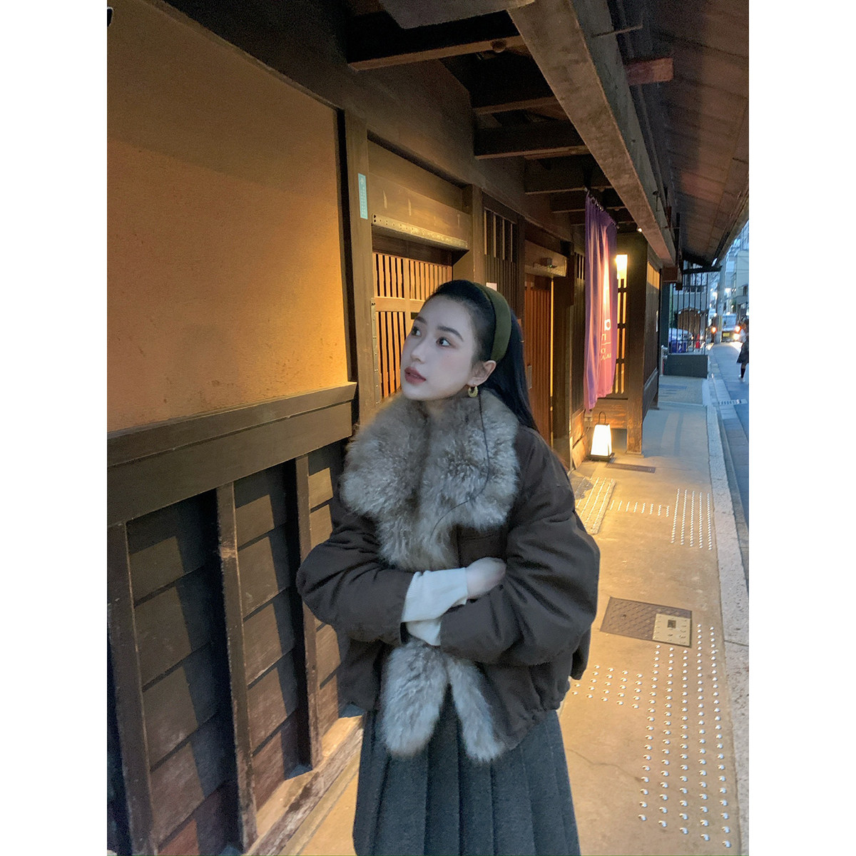 冬季 羽绒服女款 派克服内胆厚外套斜门襟可拆卸毛领短款 FDR官方店