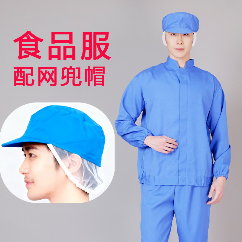 蓝色食品厂卫生工作服带帽食品级不起球男耐脏易洗洁净服防掉发冬