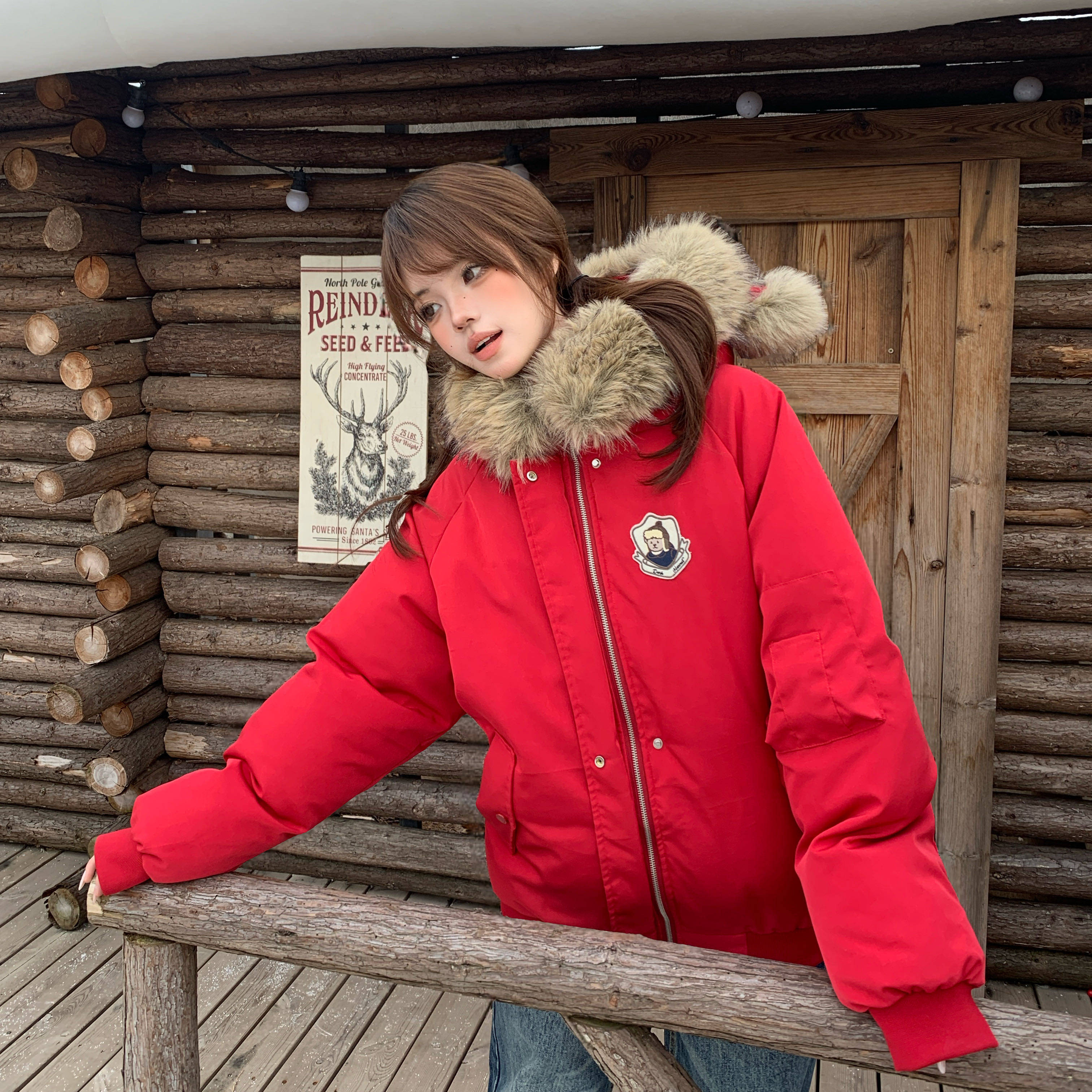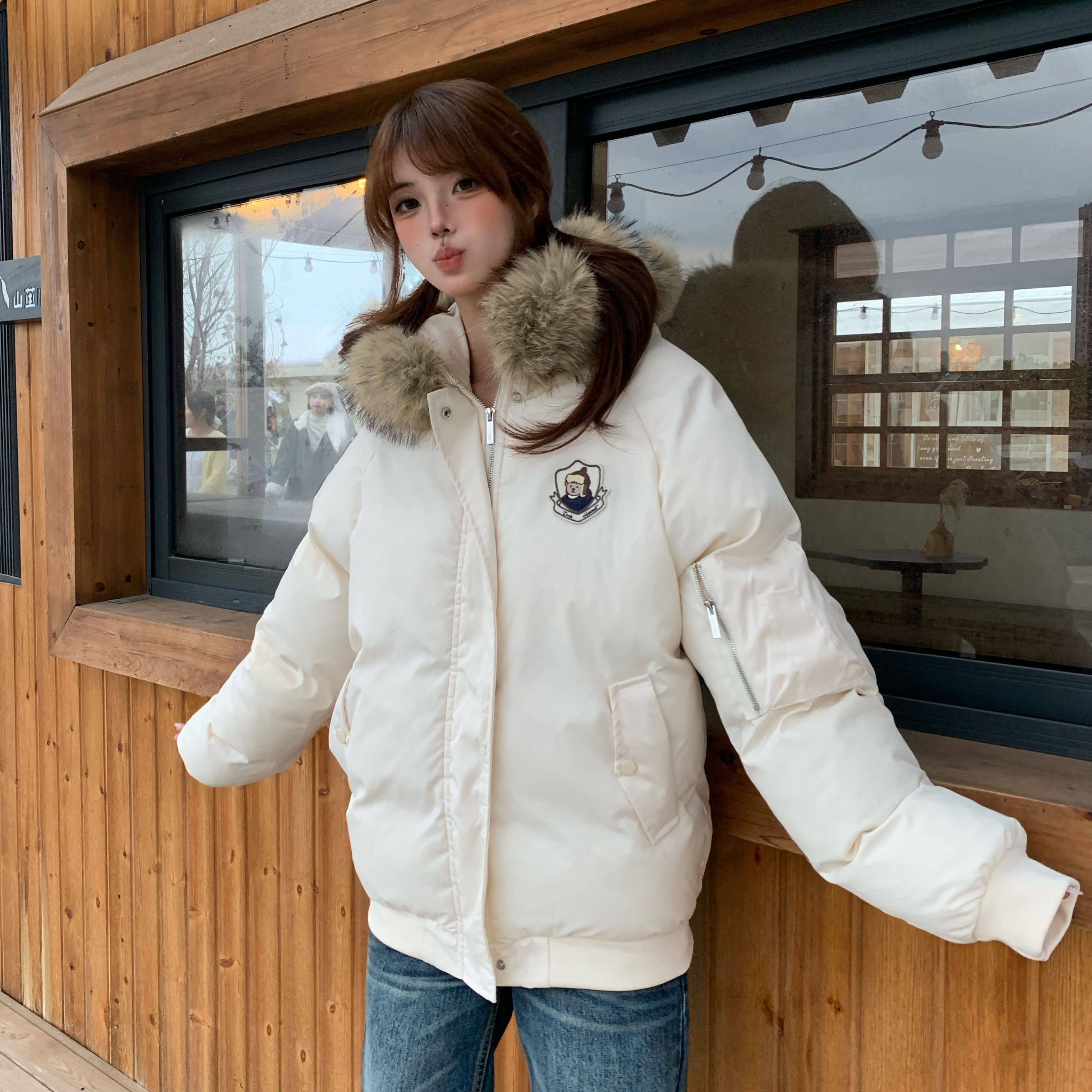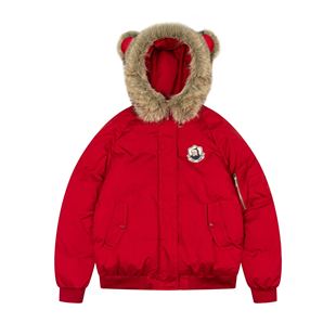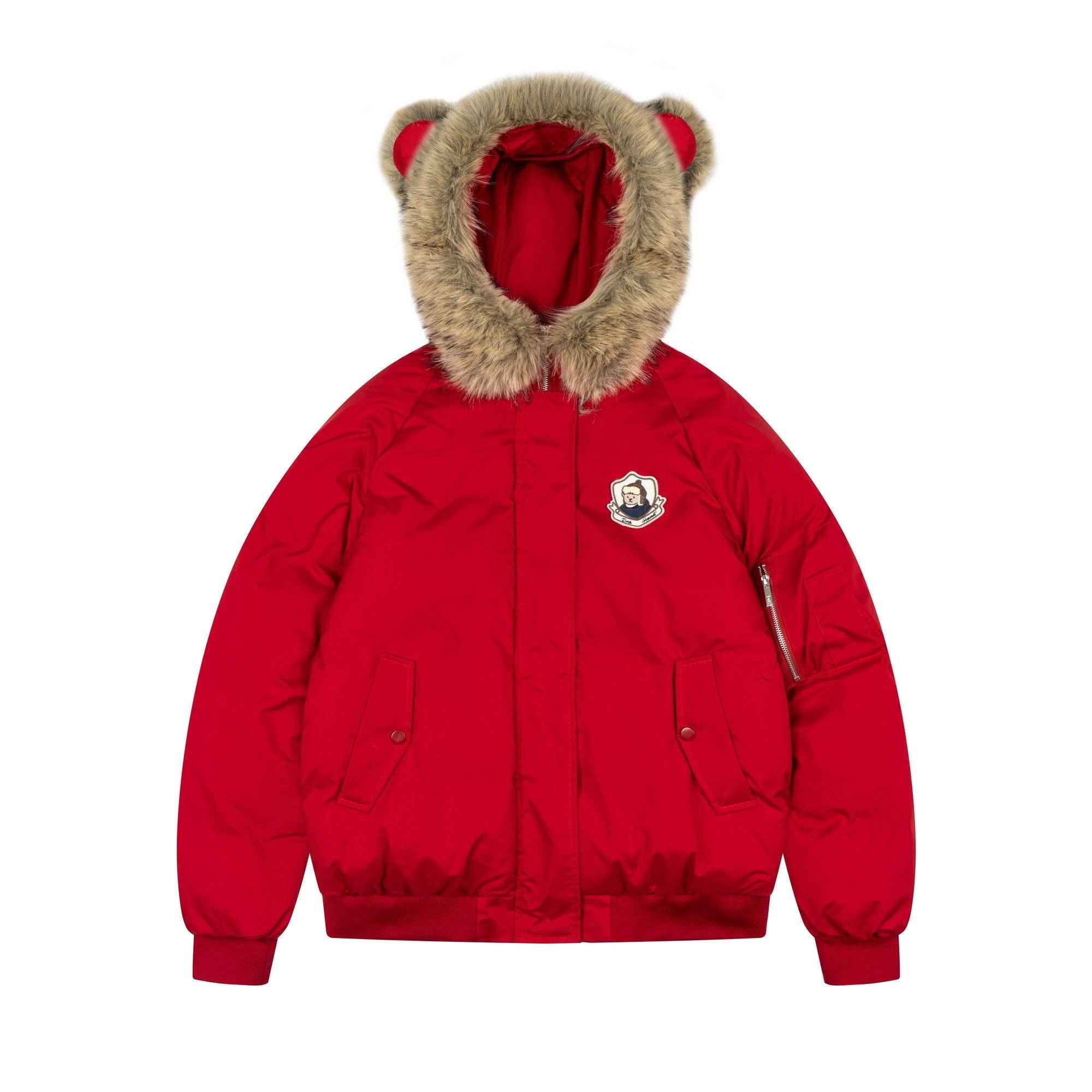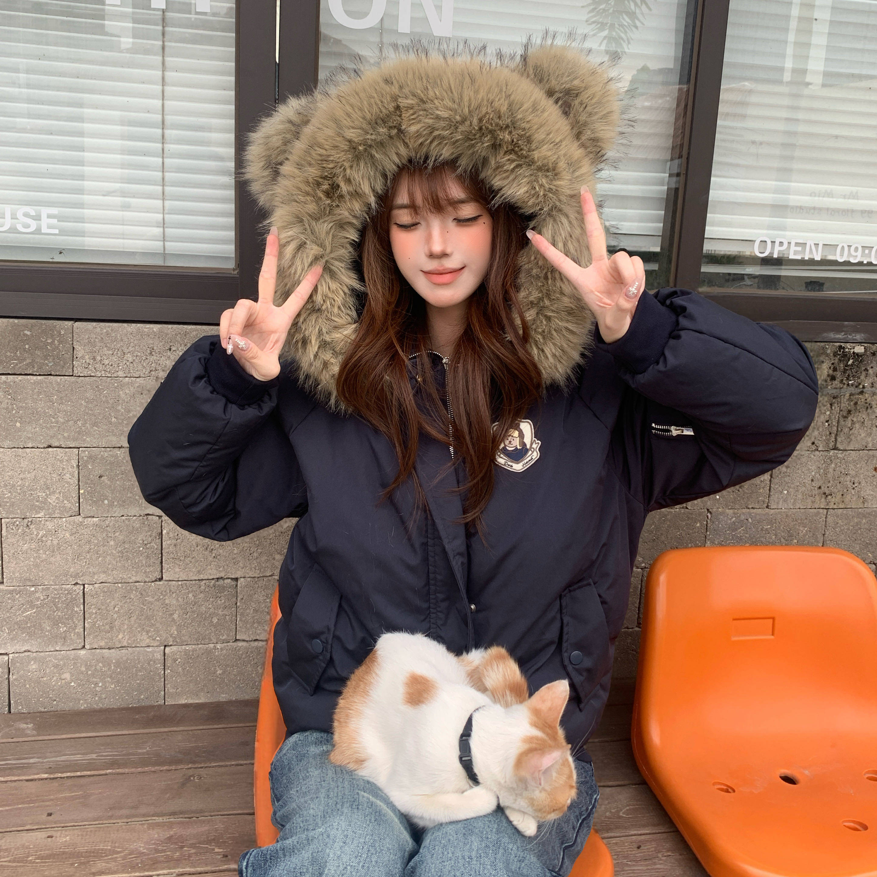 Amoeba原创可爱小熊耳朵连帽棉服可拆卸毛领冬季 加厚保暖派克服