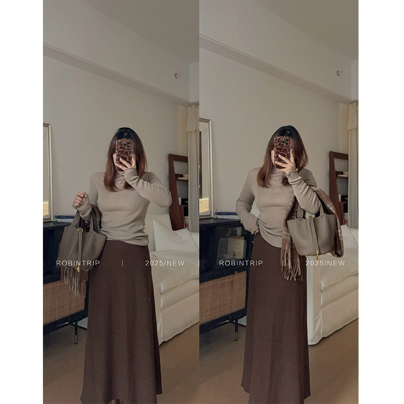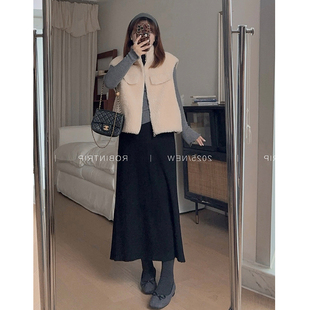 知更鸟昂酱 小个子简约百搭黑色针织半身长裙秋冬显瘦A字裙