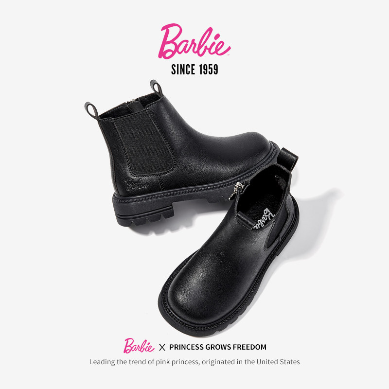 Dickies马丁靴女2025秋冬新款 户外防滑厚底加绒保暖皮靴黑色短靴