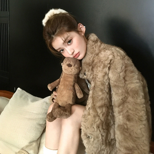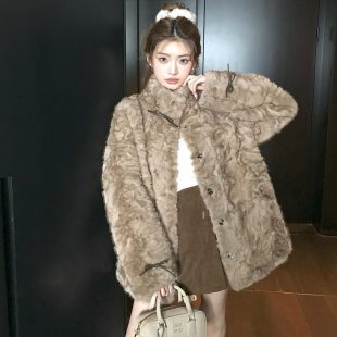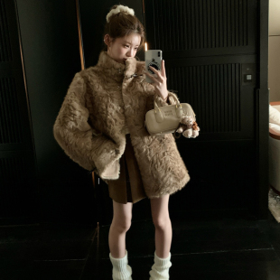 加厚保暖立领仿皮草羊羔毛大衣 皮毛一体外套女中长款 2025冬季 新款
