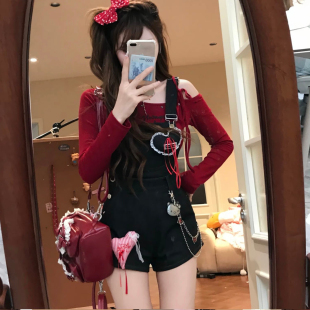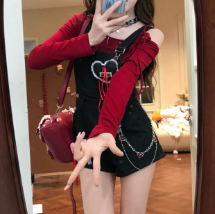 高腰显瘦连体裤 小个子可爱减龄辣妹装 女套装 奶fufu牛仔背带短裤