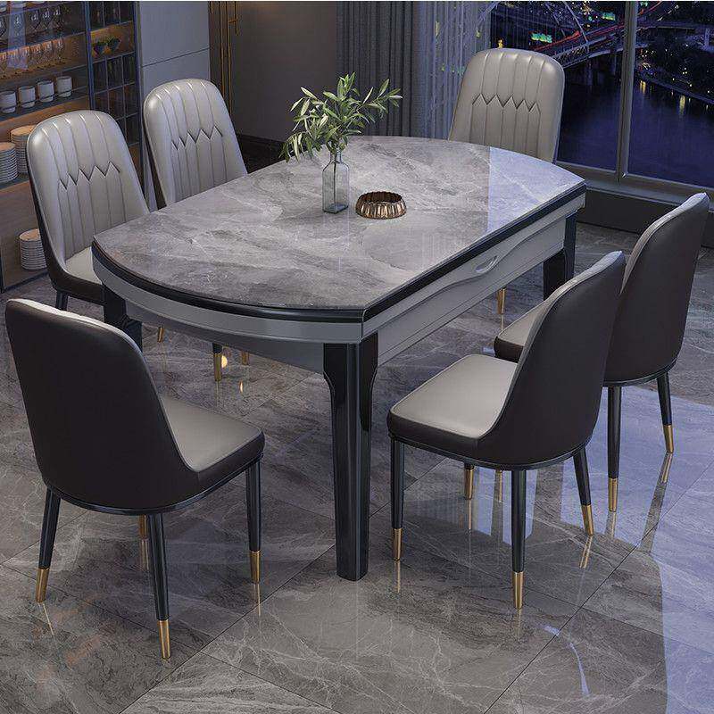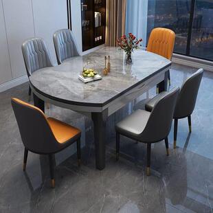 光岩板餐桌SVT椅组缩合现代简约轻奢餐亮桌可家用伸折叠实木吃饭