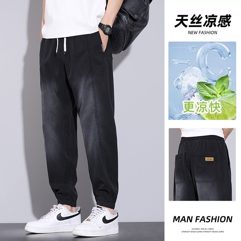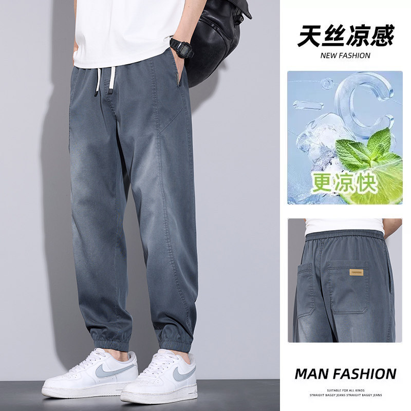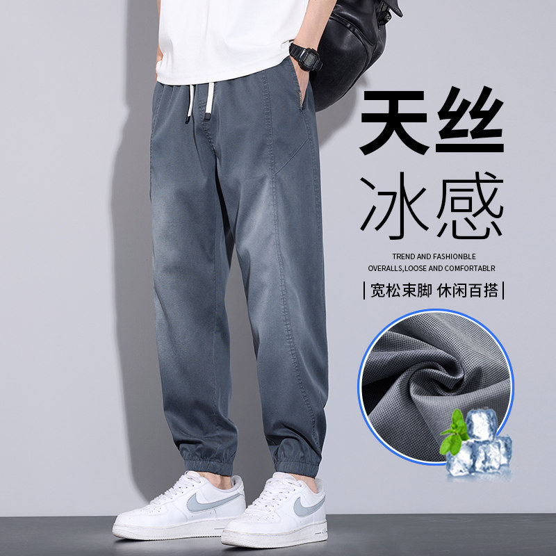 薄款 夏季 2026新款 束脚卫裤 子男 冰丝休闲裤 潮流百搭宽松男生裤 男士