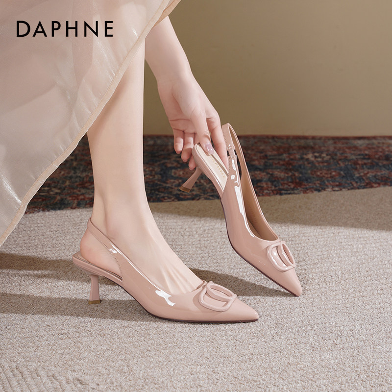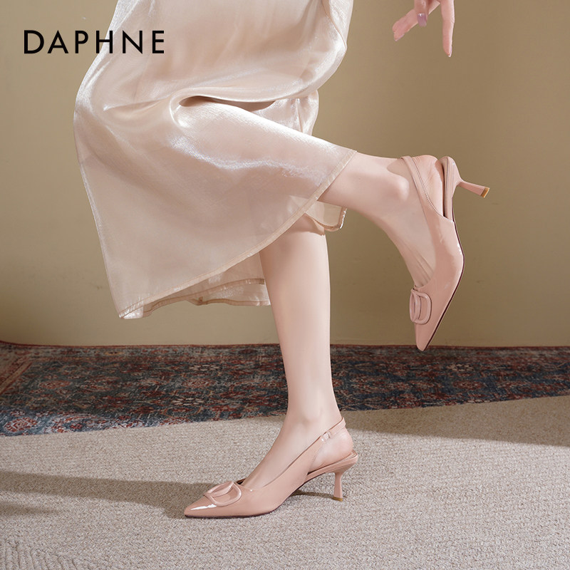 后空凉鞋 达芙妮裸色尖头高跟鞋 气质细跟单鞋 春季 子女 女2026新款