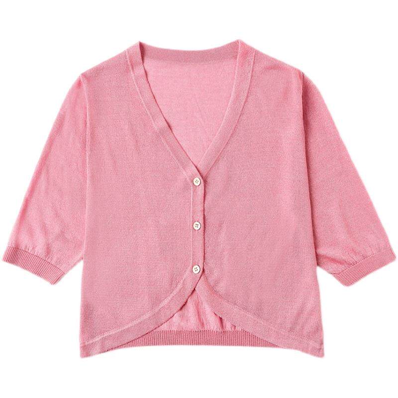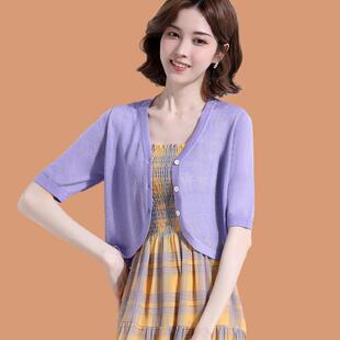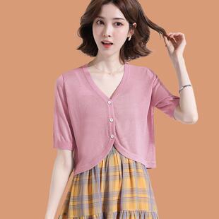 薄款 衫 女夏季 空调开 外套配吊带裙白色小披肩外 短袖 桑蚕丝针织衫