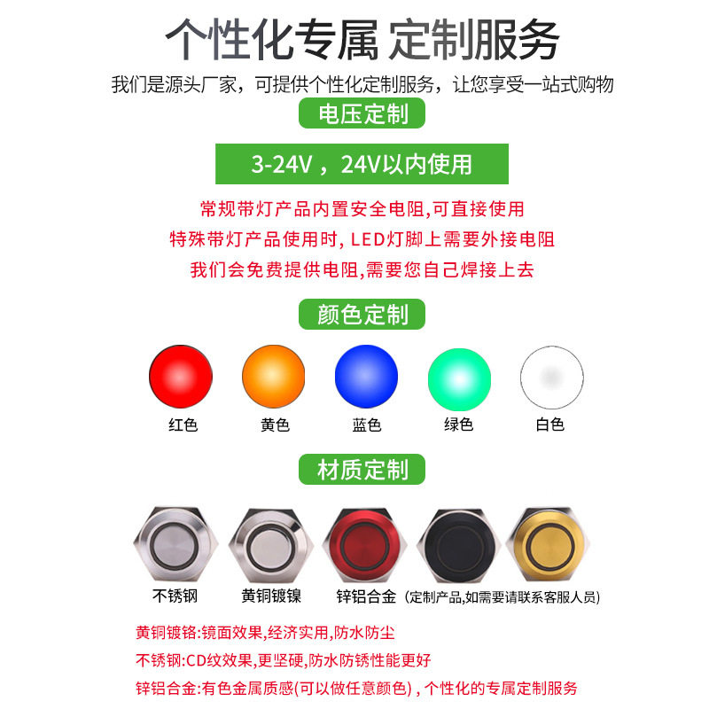 CMP西普22mm金属压电开关不锈钢防水带复位自锁ip68防水按钮开关